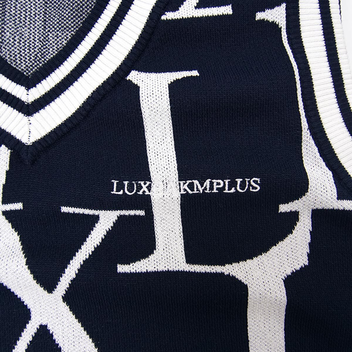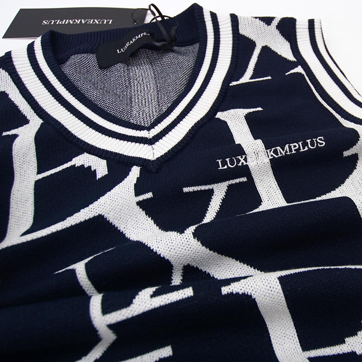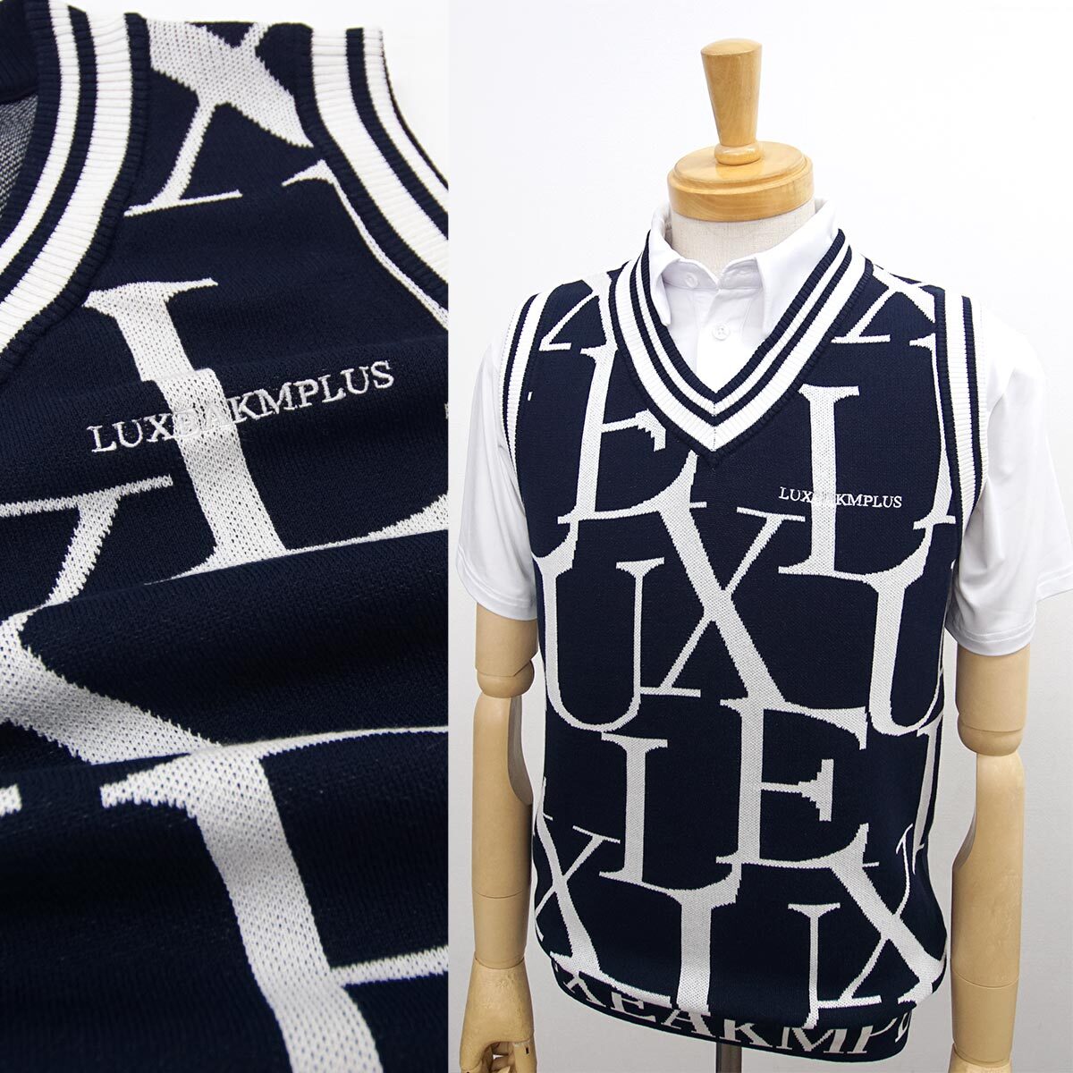 [新品]定価12980円 リュクス エイケイエム プラス【XL】雑誌LEON レオン掲載 ゴルフ ニットベスト 洗濯可能 LUXE AKM PLUS 紺【送料185円】