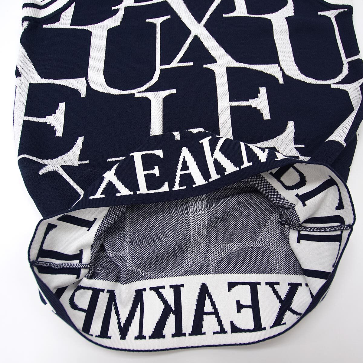 新品・未使用【リュクス エイケイエム プラス LUXEAKMPLUS】ゴルフ 総柄ロゴ ニットベスト(タグ付き)。定価は税込12,980円の品。ラグジュアリーブランド「AKM(エイケイエム)」のスポーツデザインレーベル「LUXE AKM PLUS」は「LEON」や「EVEN」などの雑誌でもお馴染みかと思います。こちらも「レオン LEON」の特集記事に掲載された品の一つです。ブランドロゴをランダムに敷き詰めた織り柄は、このブランドでよく採用されるデザイン。ロゴはプリントではなく、繊細な織り柄(ジャガード織)で描かれた同種のラインナップでもハイクラスな品。上品なツヤもあり高級感が漂います。伸縮性に優れ、動きをさまたげず、ストレスフリーな着心地。さらにUVカット機能も備え、日差しの強いシーズンでのプレーに安心の機能性も兼ね備えます。裾に配したブランドロゴがアクティブな印象。トレンドも感じるデザインでテイラードジャケット下などにもおすすめ。ゴルフだけでなくカジュアル等にも活躍が期待できます。ウォッシャブル ご家庭で洗濯ができます。こちらのサイズは【1品限り】。どうぞお見逃し無く。