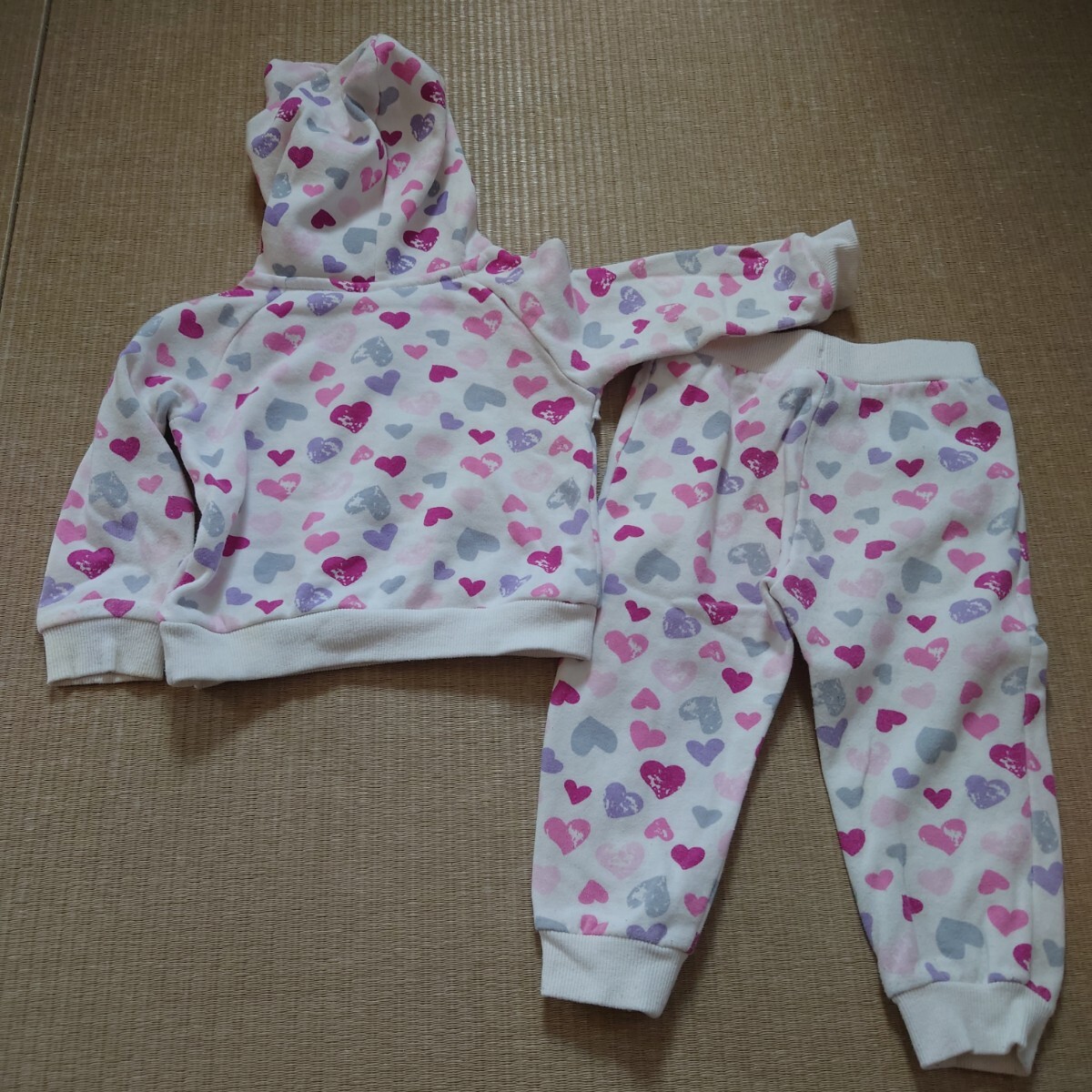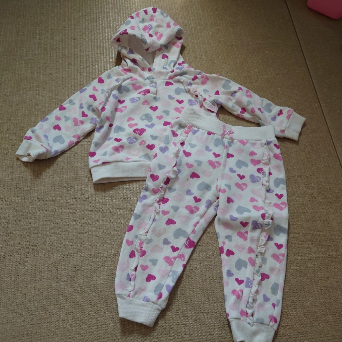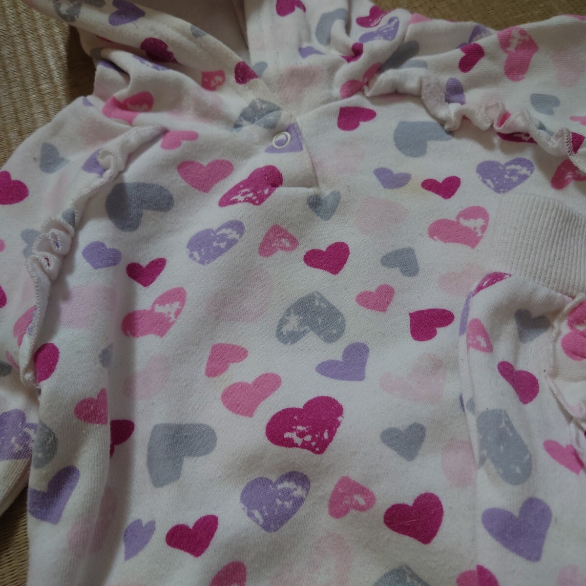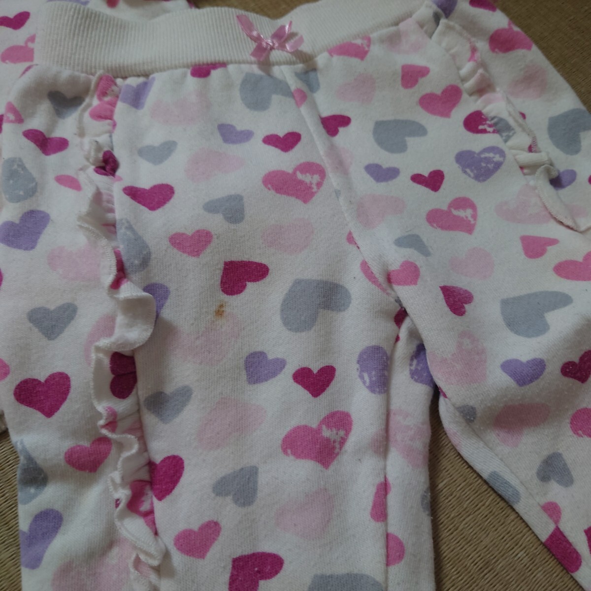 ハート柄のフリル付き80cmセットアップ。