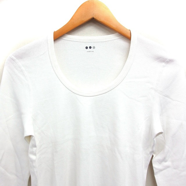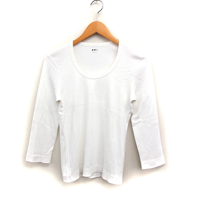 スリードッツ three dots ラウンドネック Tシャツ カットソー 7分袖 無地 コットン 綿 L ホワイト 白 /FT22 レディース