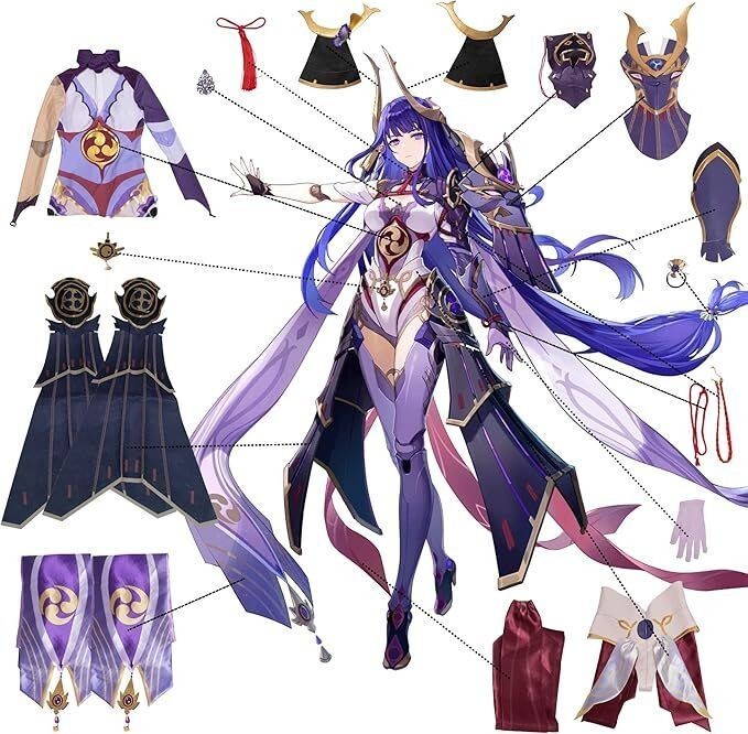 原神 げんしん雷電将軍(ボス)コスプレ衣装 豪華版 フルセット 禍津御建鳴神命・コスプレ衣装 アクセサリー ウィッグ&靴追加購入