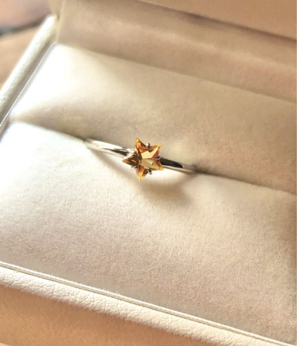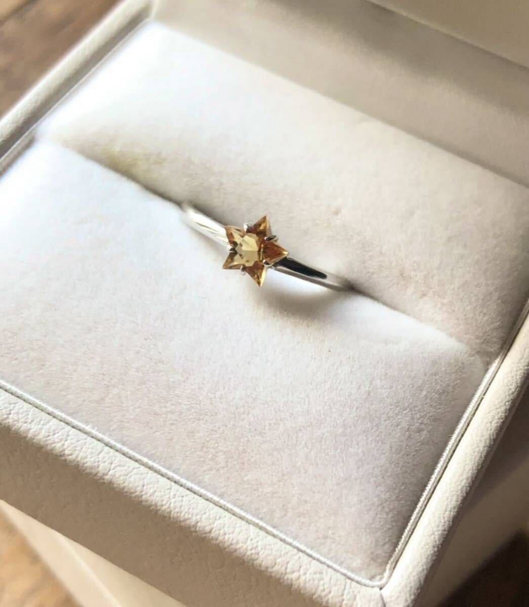 スターリング お星様 シトリン 特注 指輪 10KWG ホワイトゴールド リング クリスマス
