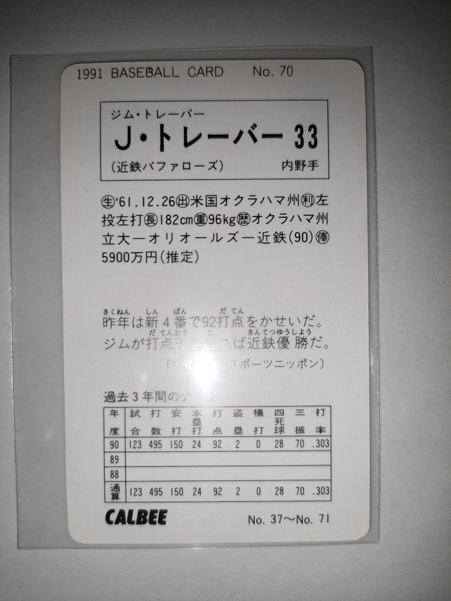 トレバー 91 カルビープロ野球チップス No.70 近鉄バファローズ