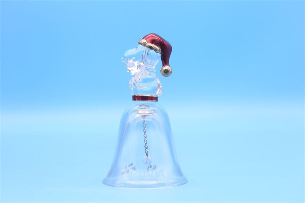 Lenox(レノックス)製のクリスタルベルです。 サンタ帽をかぶったスヌーピーが愛らしくデザインされた、透明感あふれるクリスタルガラス製のベル。繊細な造形と、レッドカラーがホリデー気分を盛り上げます。振るとやさしく澄んだ音色が響き、飾るだけで心がほっこり。 2003年製・オリジナルボックス付きで、コレクションにもぴったりな一品です。