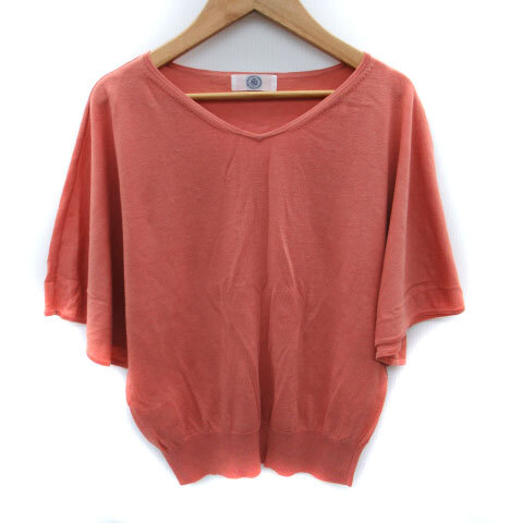 ジェイプレス J.PRESS ニット カットソー 半袖 ドルマンスリーブ M サーモンピンク /SM37 レディース