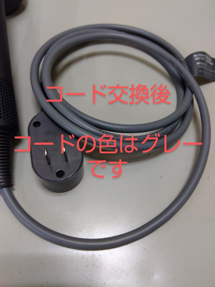 画像のドライヤーはコードを新品に交換したもので見本です。