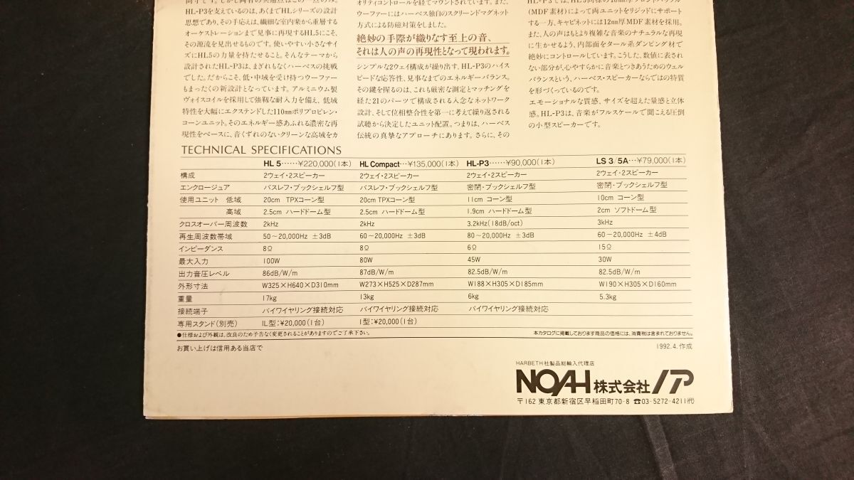 『HARBETH(ハーベス) スピーカー HL5・ HL Compact・HL-P3・ LS3/5A カタログ 1992年4月』NoAH株式会社 | |