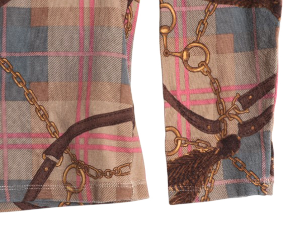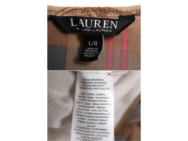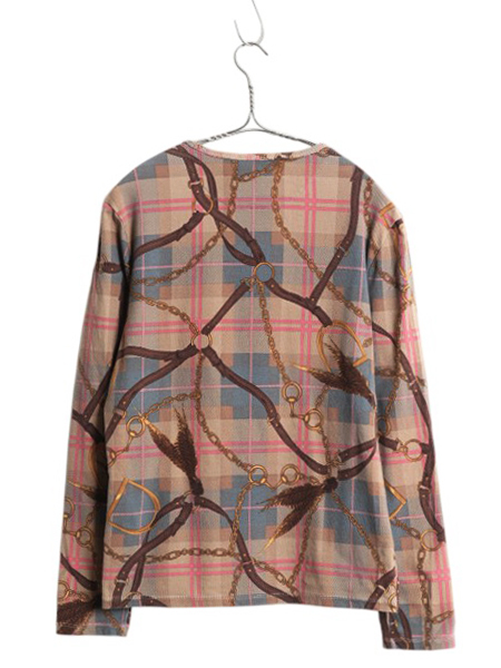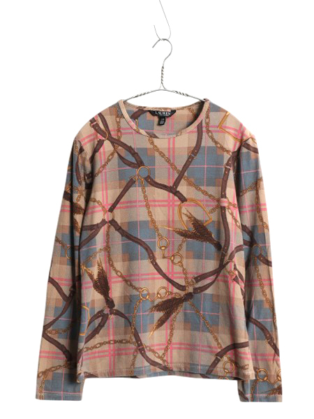 商品名 | ローレン ラルフローレン 総柄 長袖 Tシャツ レディース L ロンT カットソー ストレッチ コットン 薄手 馬具 チェーン ビット マルチカラー |