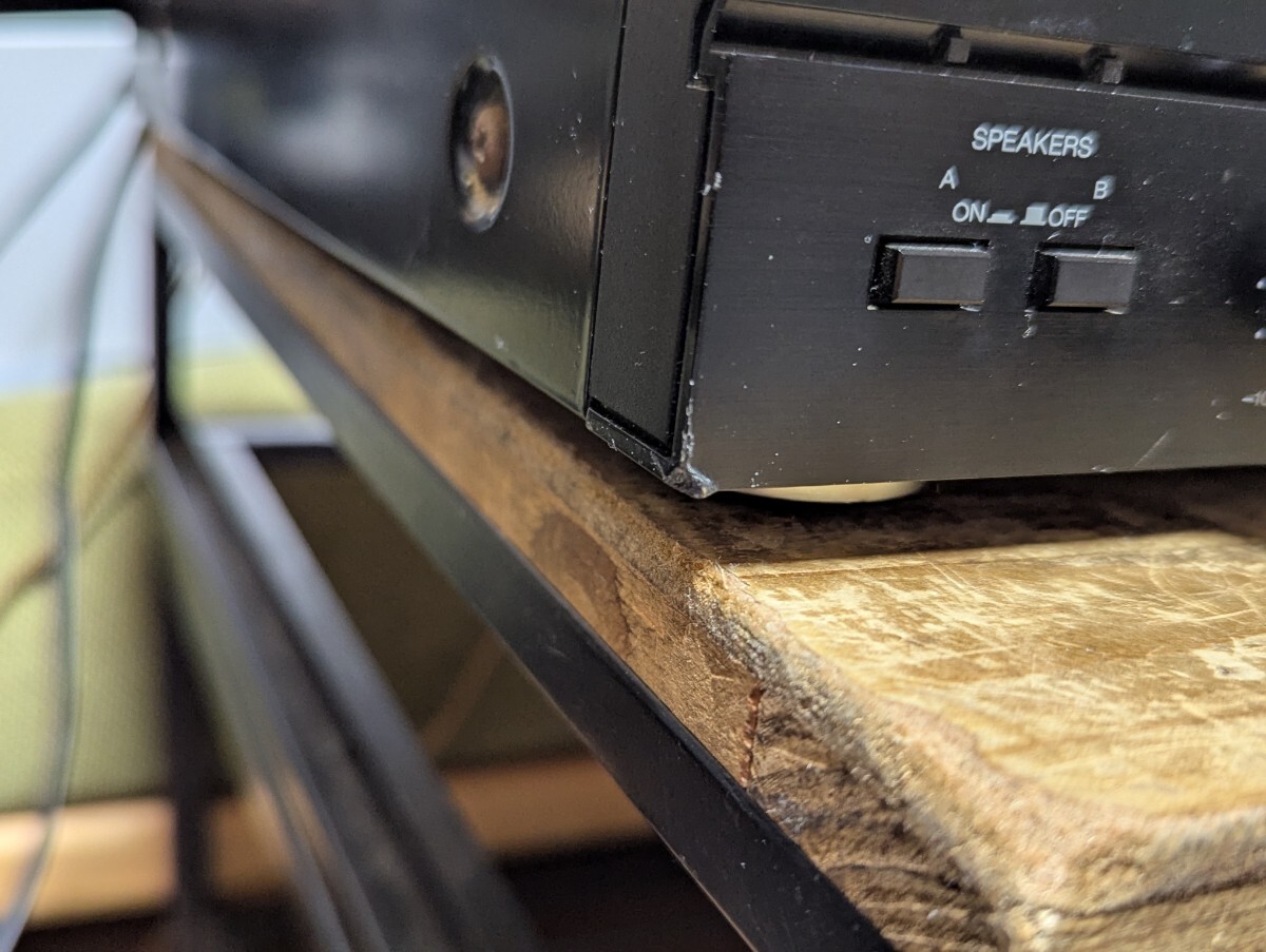 ありませんので手持ちの短いRCAケーブル付けておきます。つけいないと音が出ませんのでご注意下さい。