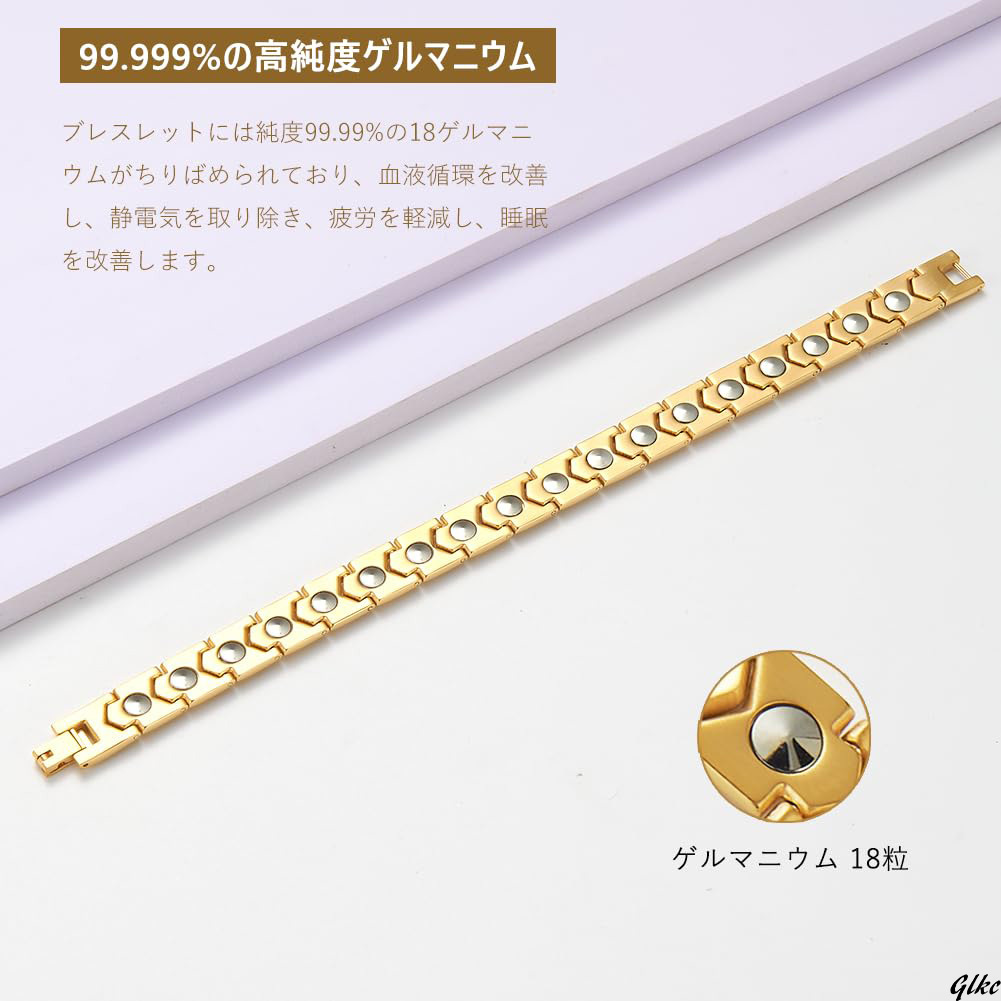 ゲルマニウムブレスレットは、純度99.999%の高品質なゲルマニウムを18粒使用し、静電気の防止や健康管理に優れた効果を発揮します。