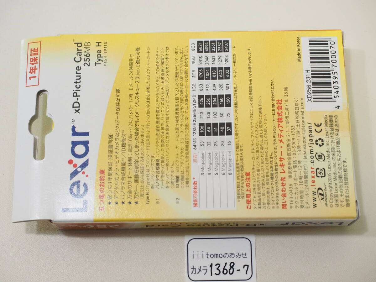 管理番号 カメラ 1368-7 タイプ xDピクチャーカード 256MB(TypeH) 未使用ですが、箱にセロテープ貼付があります ブランド名 Lexar レキサー(OLYMPUS オリンパス) 製造国 韓国製 サイズ ━ |