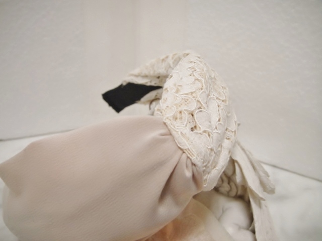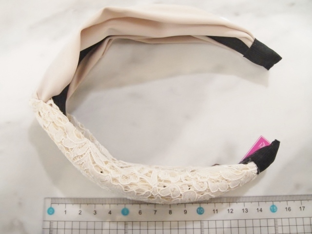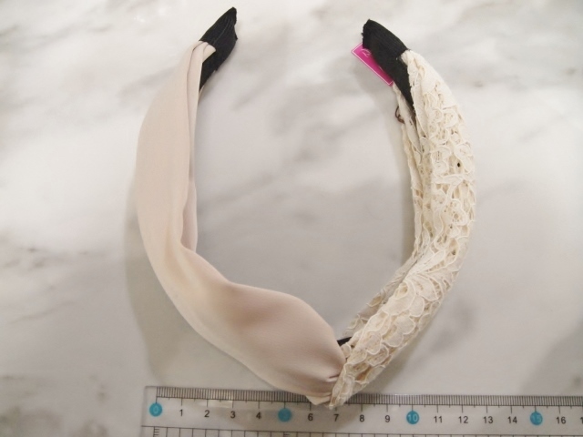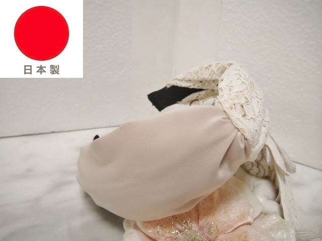 ♪ 新品 日本製 Made in Japan カチューシャ『高品質/シルクシフォン&レース/フラワー/透かし模様/花/幅広/フロントクロス/パールベージュ