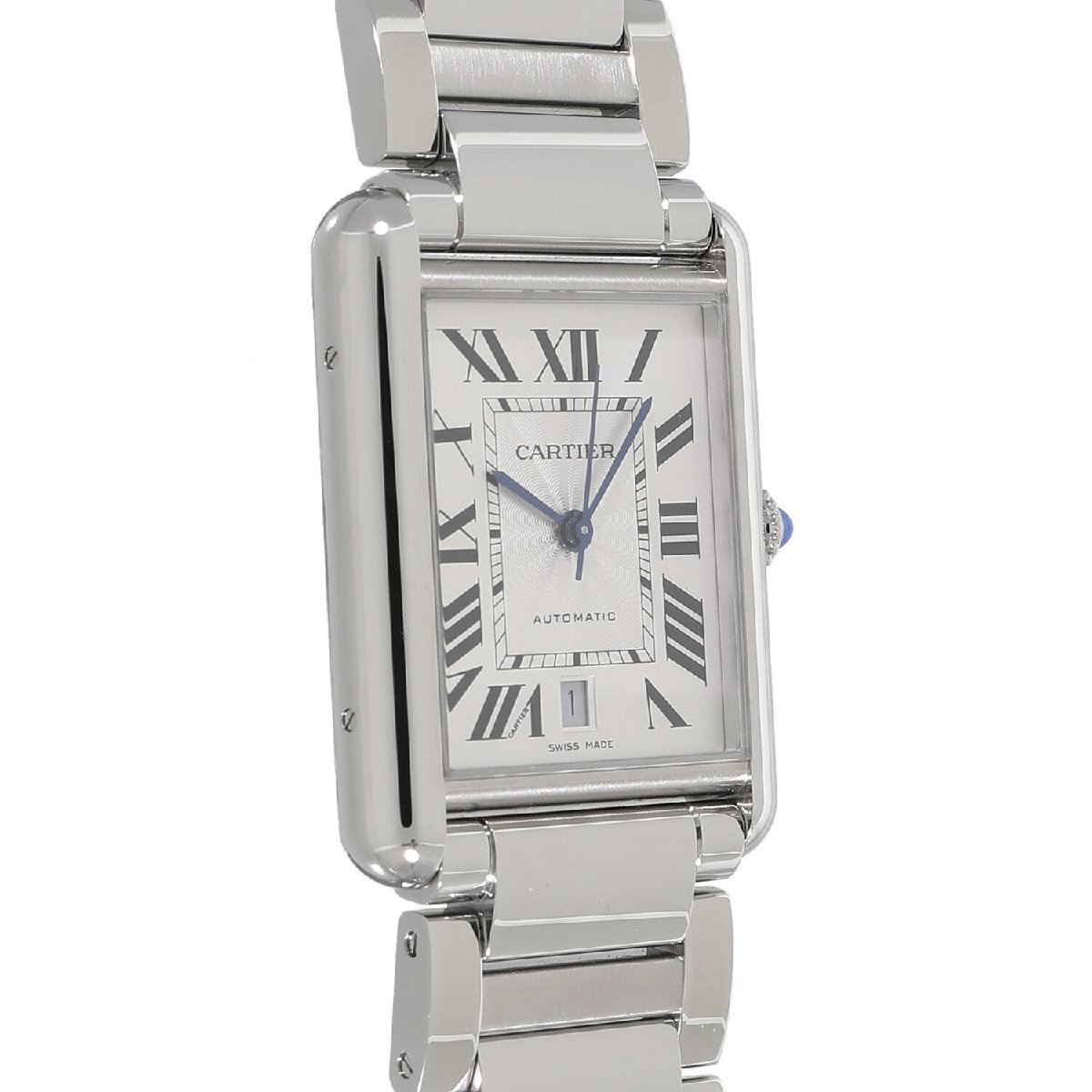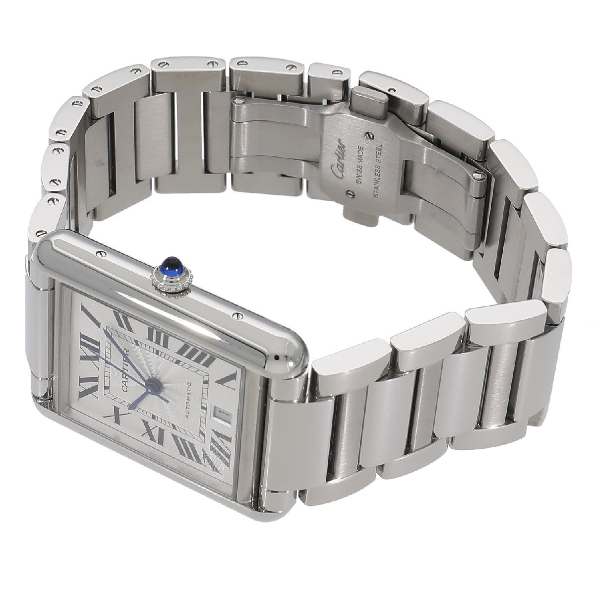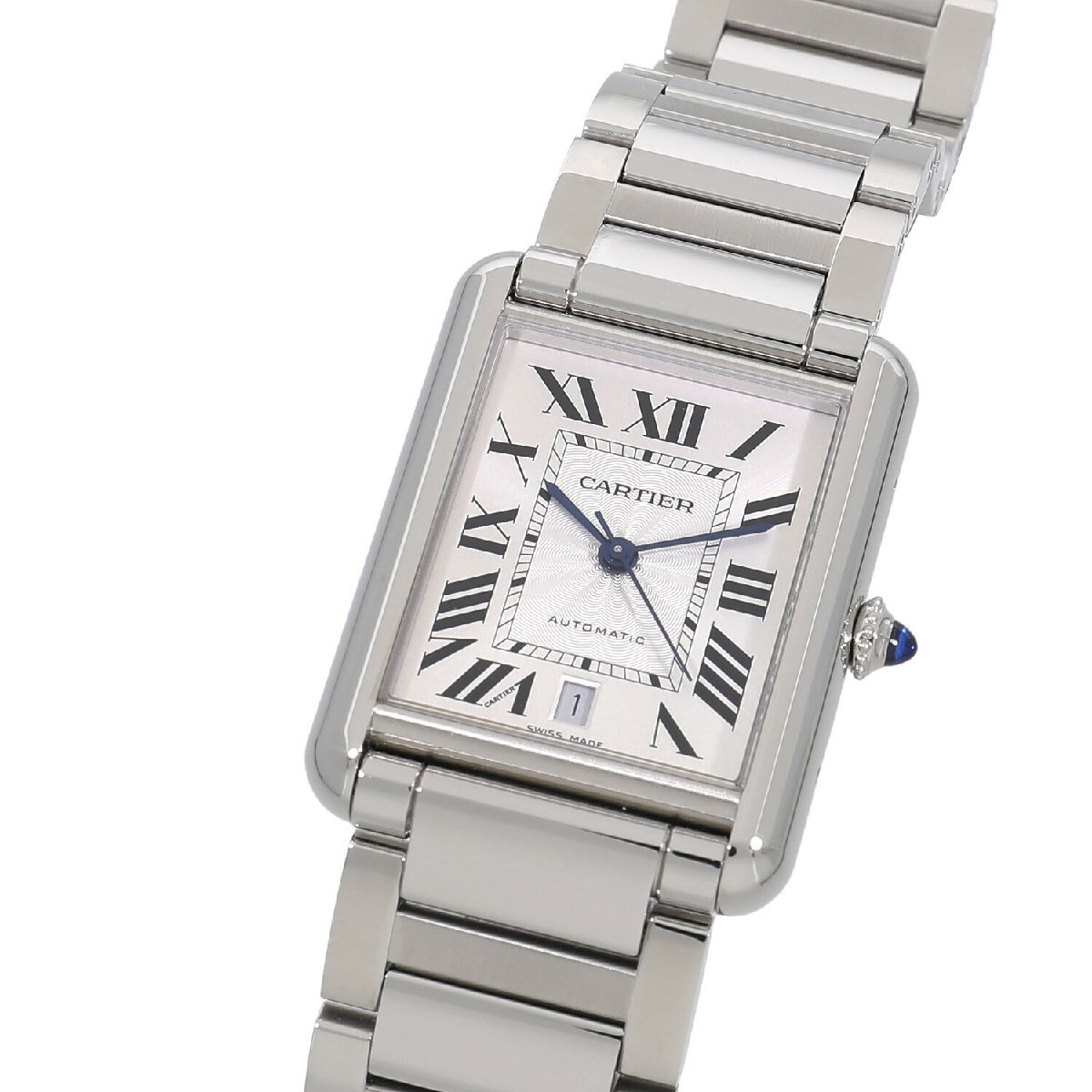 | モデルについて | 2021年の新作 100年以上の歴史を持つカルティエの人気シリーズ「タンク」に、かつては廃盤となったものの高い人気を得ていた「マスト」シリーズの要素を取り入れ生まれたのがこの「タンク マスト」。シルバーダイヤルには波打つような模様が特徴のフランケ装飾が施されており、青焼きされた3針がエレガントで美しいモデルです。現在3サイズ展開している中で最も大きなXLサイズで、ムーブメントは自動巻きキャリバー1847MCが搭載されています。 |