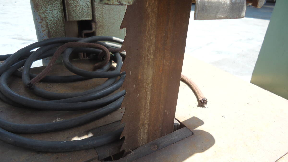 鋸刃の回転はスムーズ。   天板寸法は460㎜×450㎜。   本体寸法は900㎜×700㎜×高さ1500㎜。