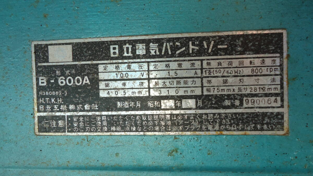 メーカーは 日立 B-600A 型 鋸盤。  100Vで使えるタイプ。 50/60HZです。