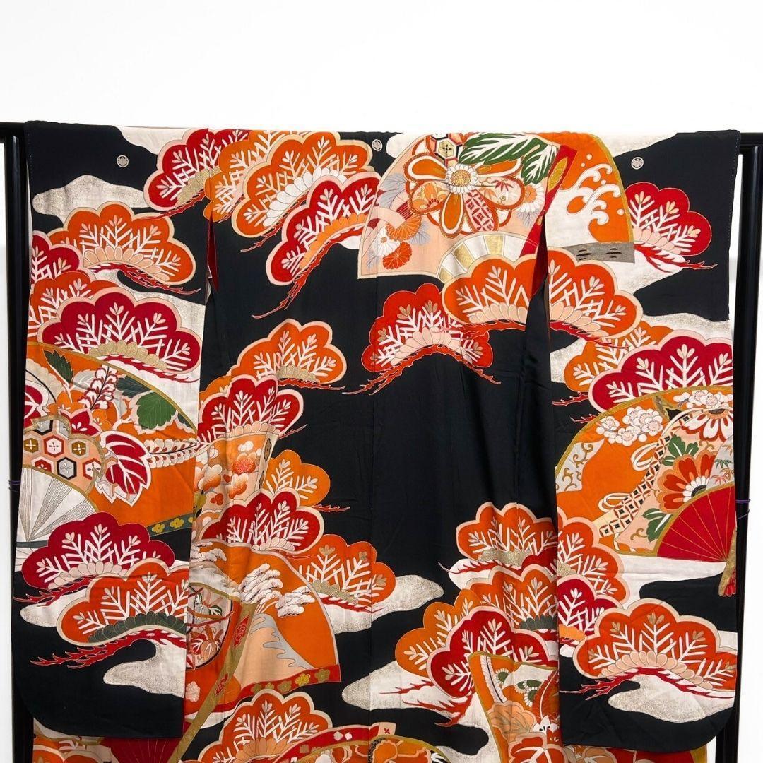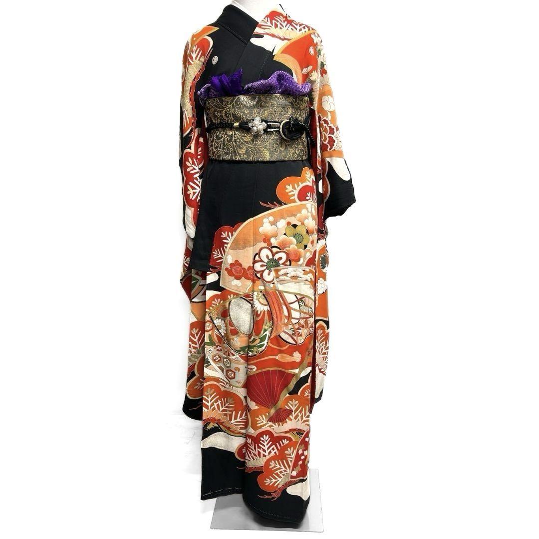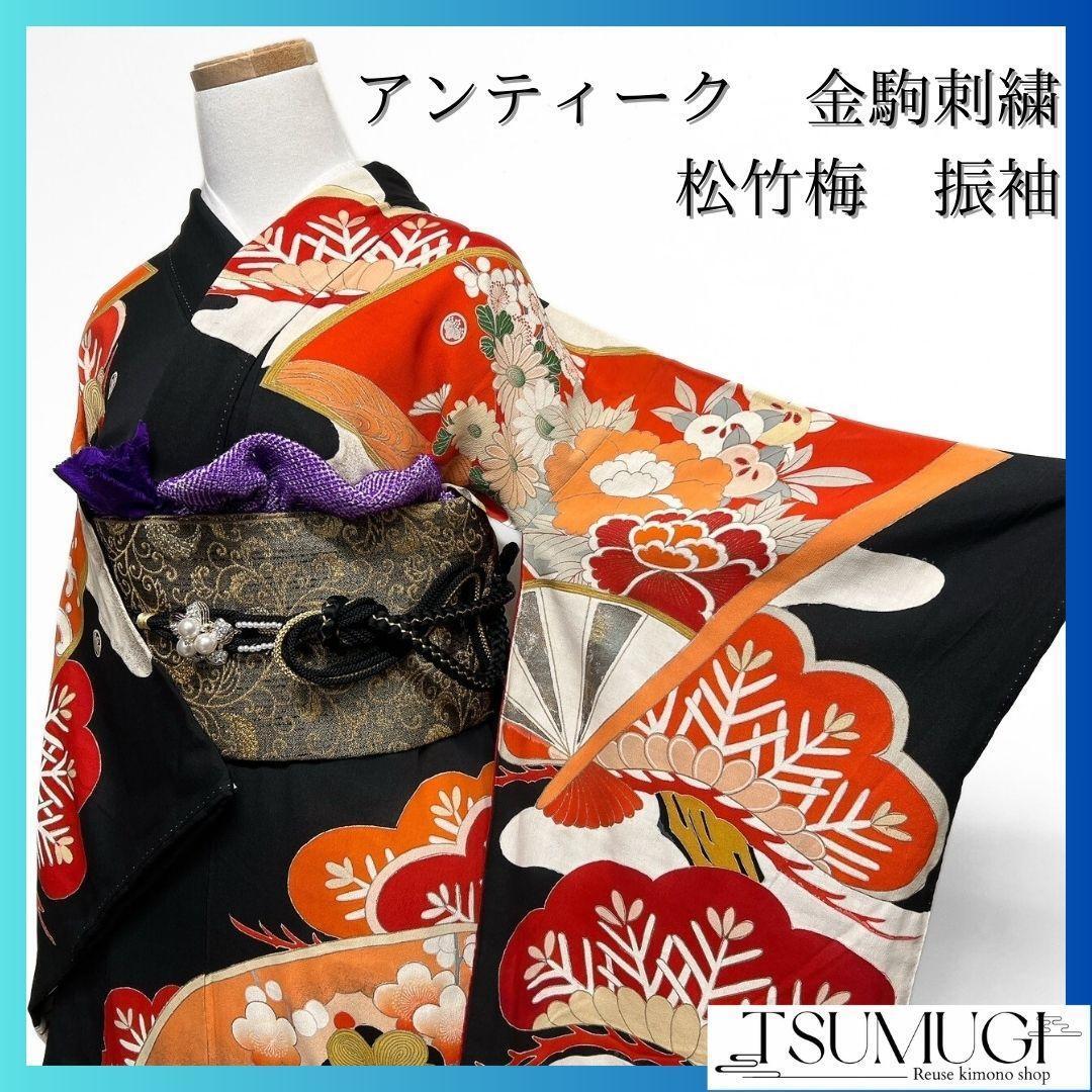 アンティーク 金駒刺繍 金彩 松竹梅 扇 振袖 成人式 着物 022a p