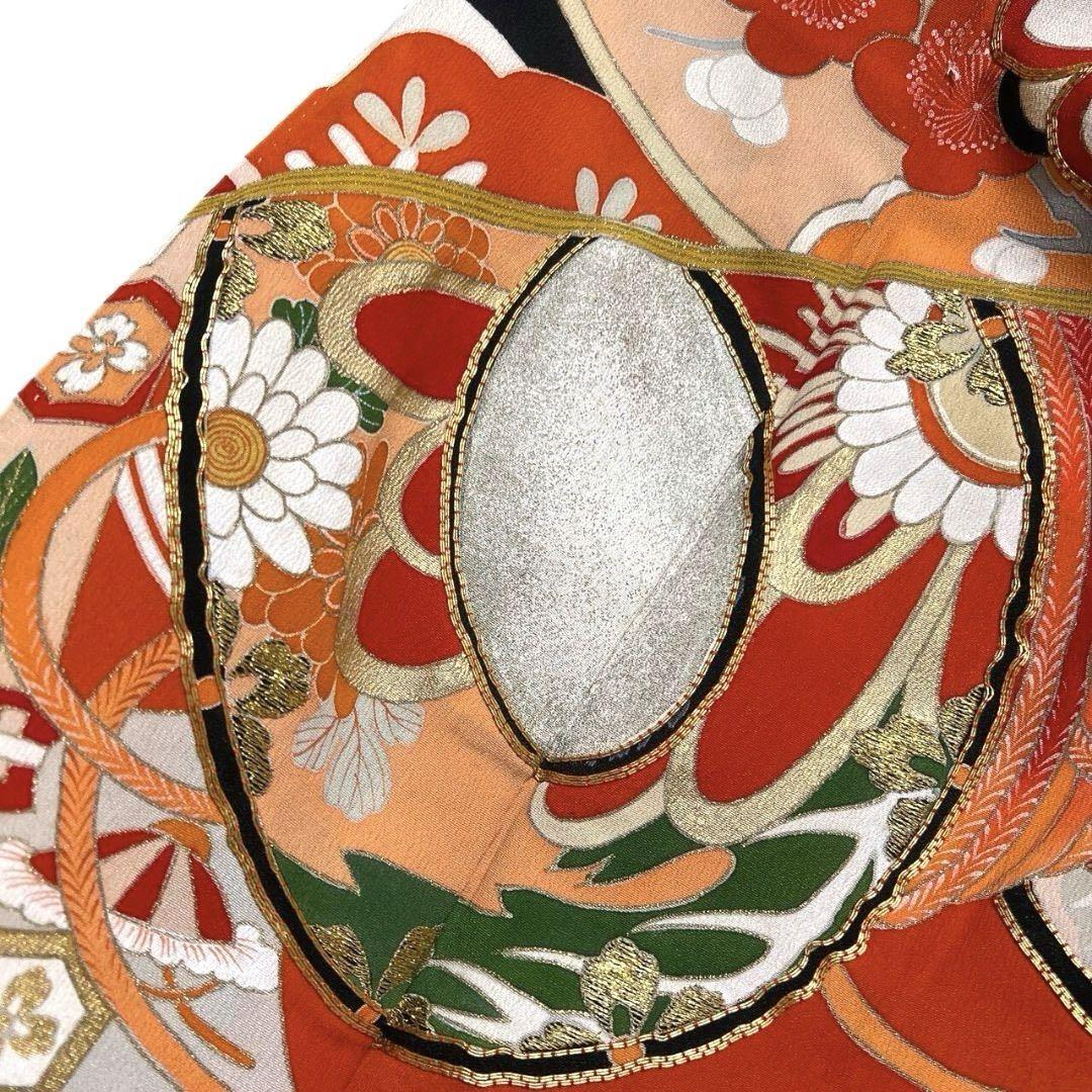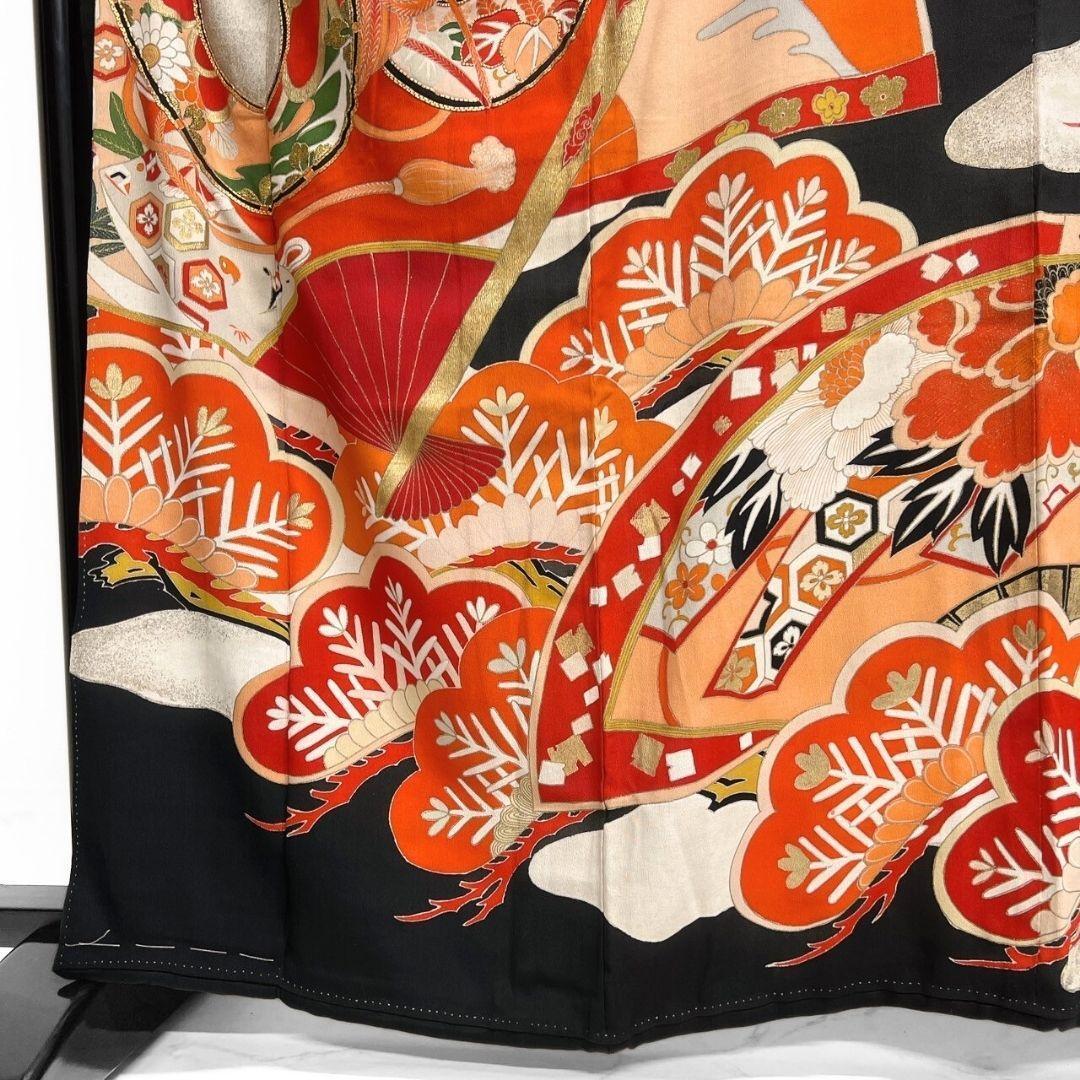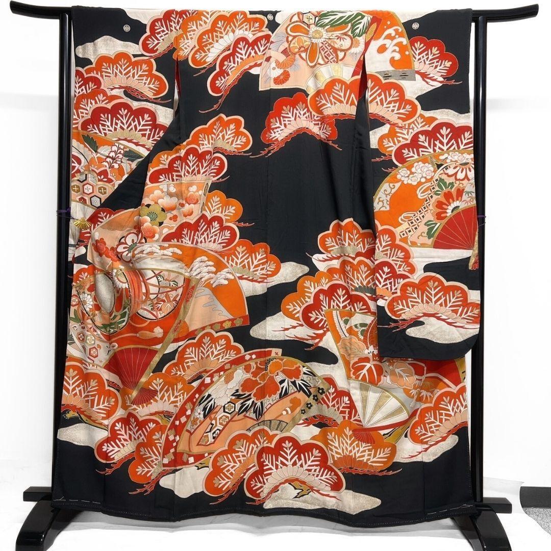 アンティーク 金駒刺繍 金彩 松竹梅 扇 振袖 成人式 着物 022a p