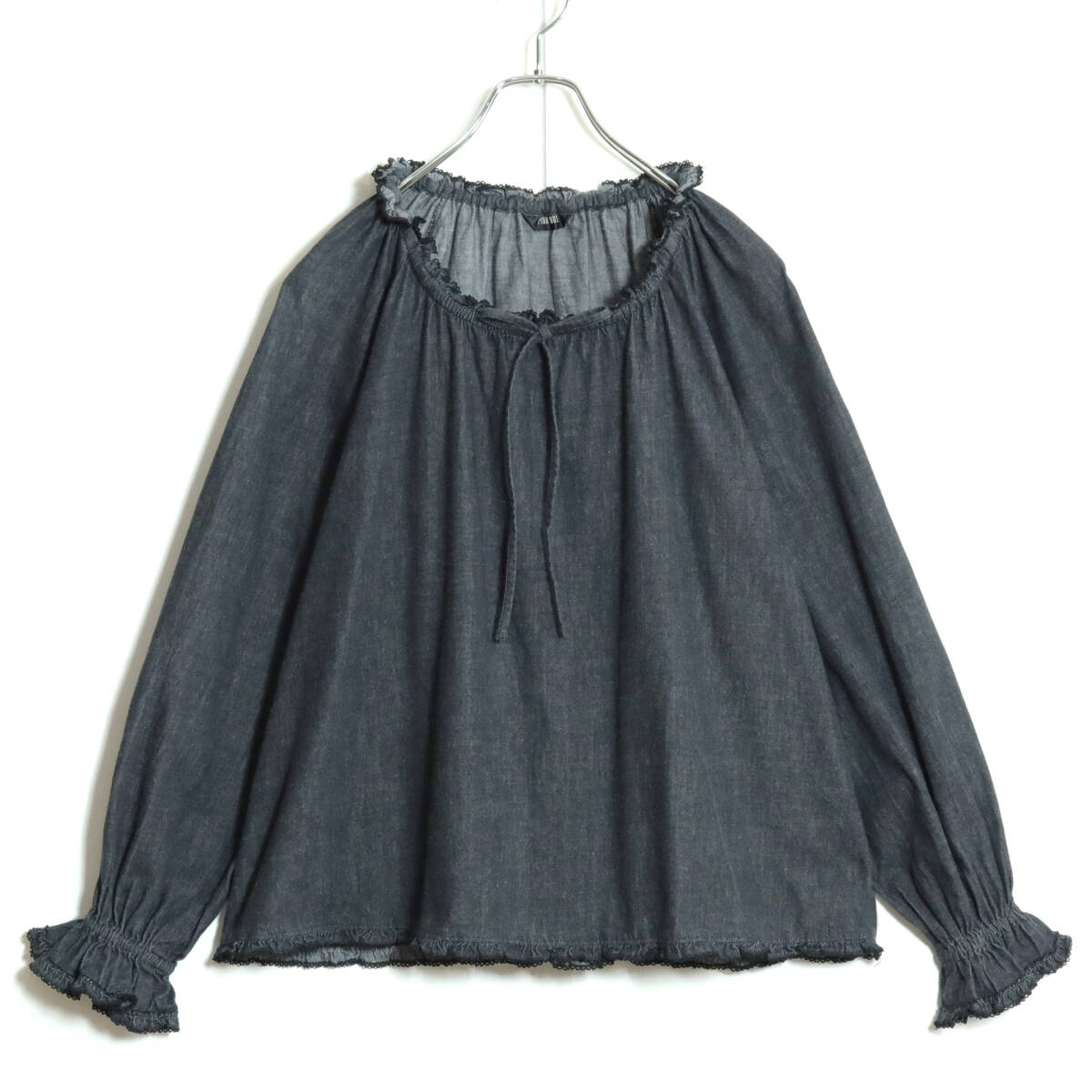 | 商品説明 | 【実寸約】裄丈82バスト116着丈59(cm) 【サイズ表記】 なし。実寸をご参照くださいませ。 【素材】 綿100% 【状態】使用感少なめの美品 毛羽立ち感ほんの少々あり 【デザイン】黒系 ふんわりフォルムの長袖デニムブラウスです。 袖口と襟ぐりがゴム入りでギャザーたっぷりのシルエット♪ ピコフリルもキュート! これ一枚でもレイヤードでもロマンティックコーデに大活躍するアイテムです。 2023年製。 |