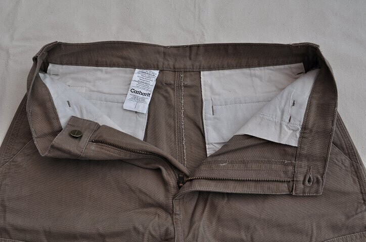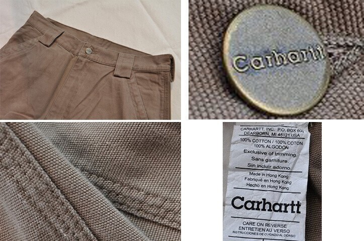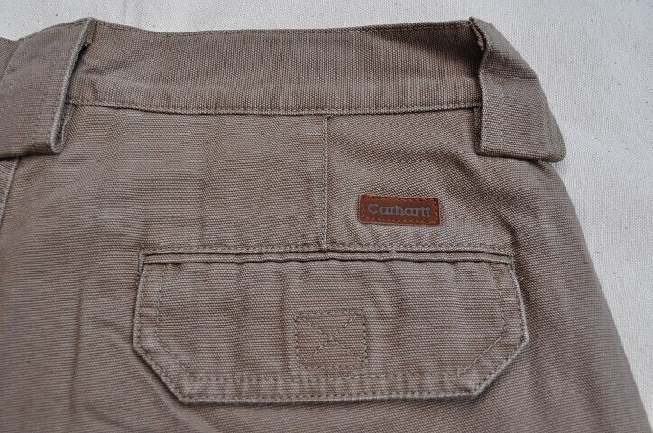 右後ろポケット上部にcarharttのブランドのロゴタグが付きます
