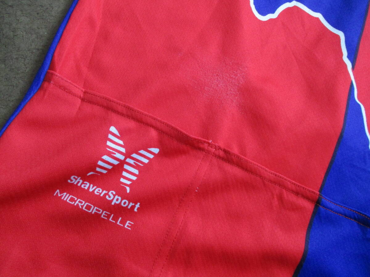 USAの著名ブランドである、“Shaver Sports”の、2/3ジップ:プルオーバータイプの、スタイリッシュな、サイクル・ジャージでLサイズの表記。