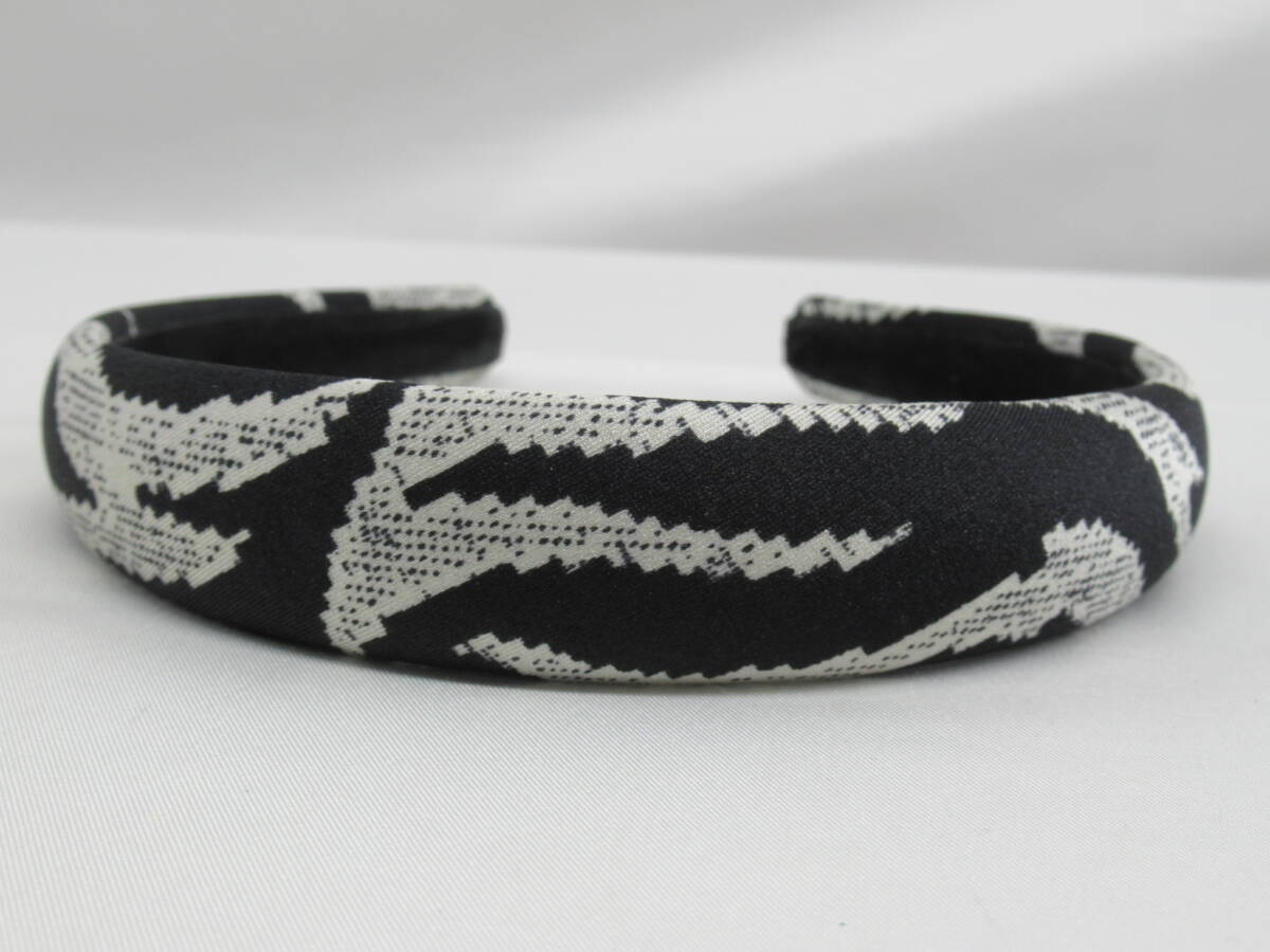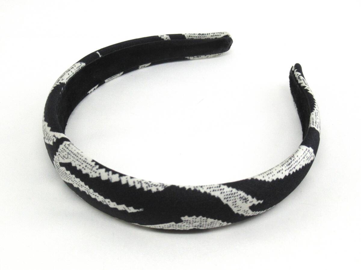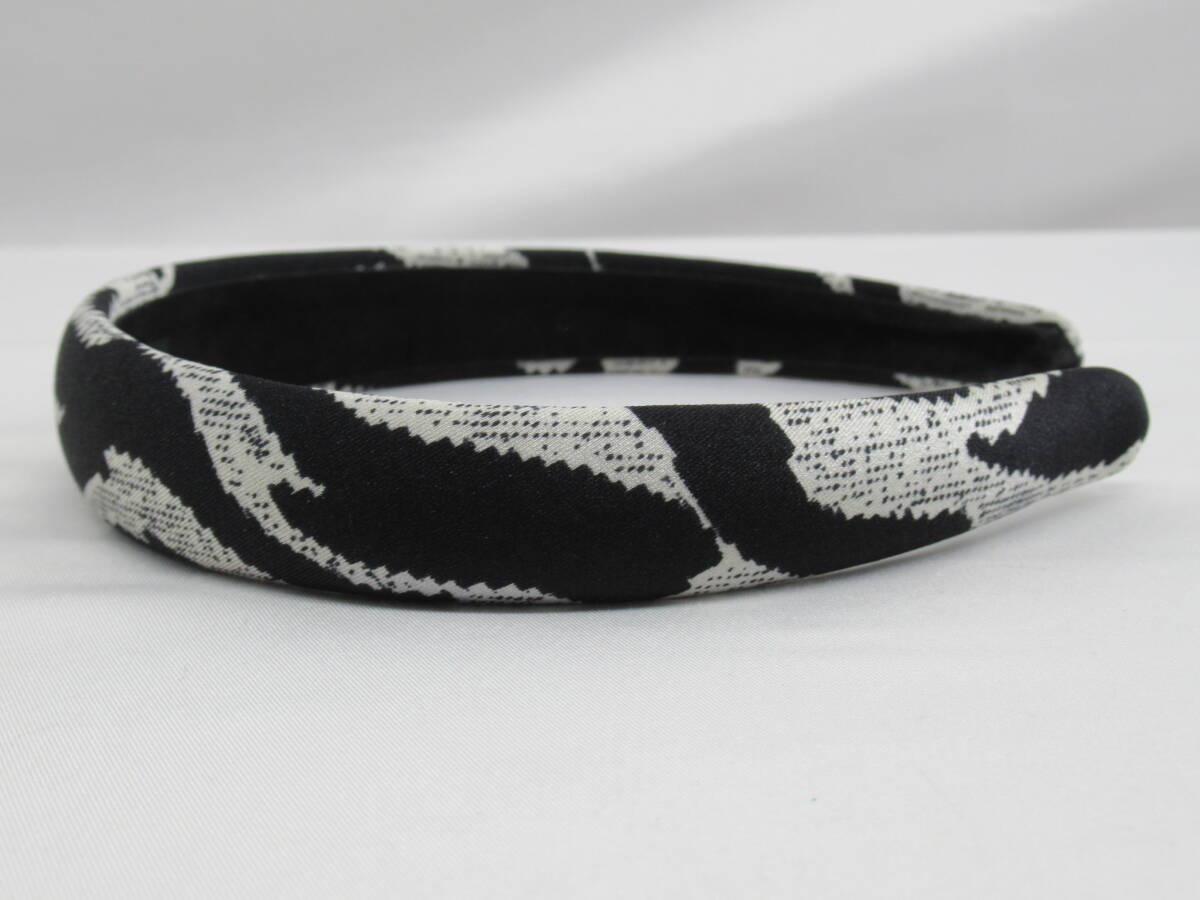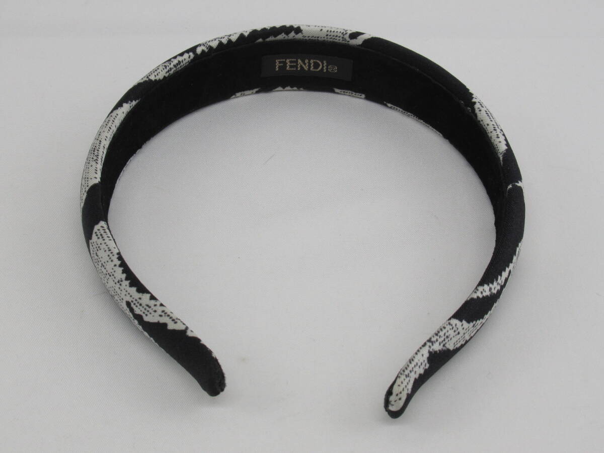 ☆☆パケット発送/同梱不可【B送400円】1729 FENDI フェンディ カチューシャ ヘアバンド ヘアアクセ サテン生地 柄 白×黒