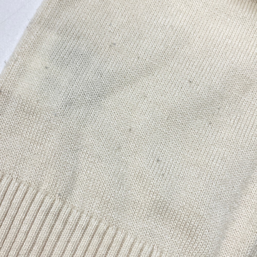 B 袖下に毛羽立ち、フロント・袖に汚れ、袖口・フロント色移り |