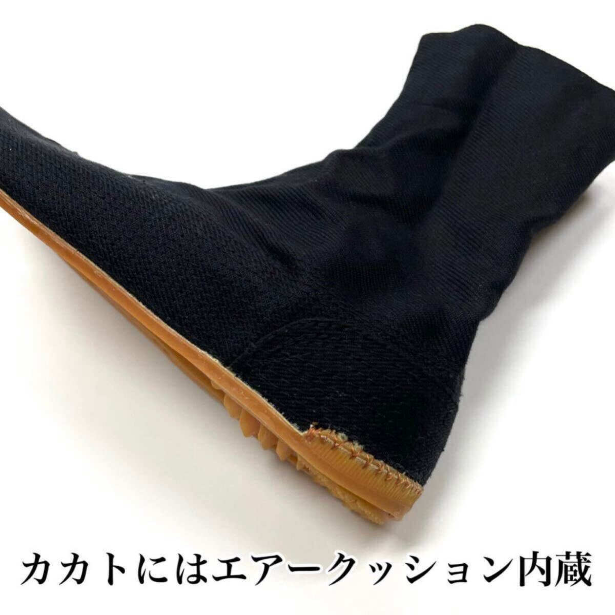 こちらは足のカカト部分に【エアークッション】が内蔵された足袋となっており、優しい吸収力&高いクッション性で激しい動きなどにも最適な地下足袋となっております。
