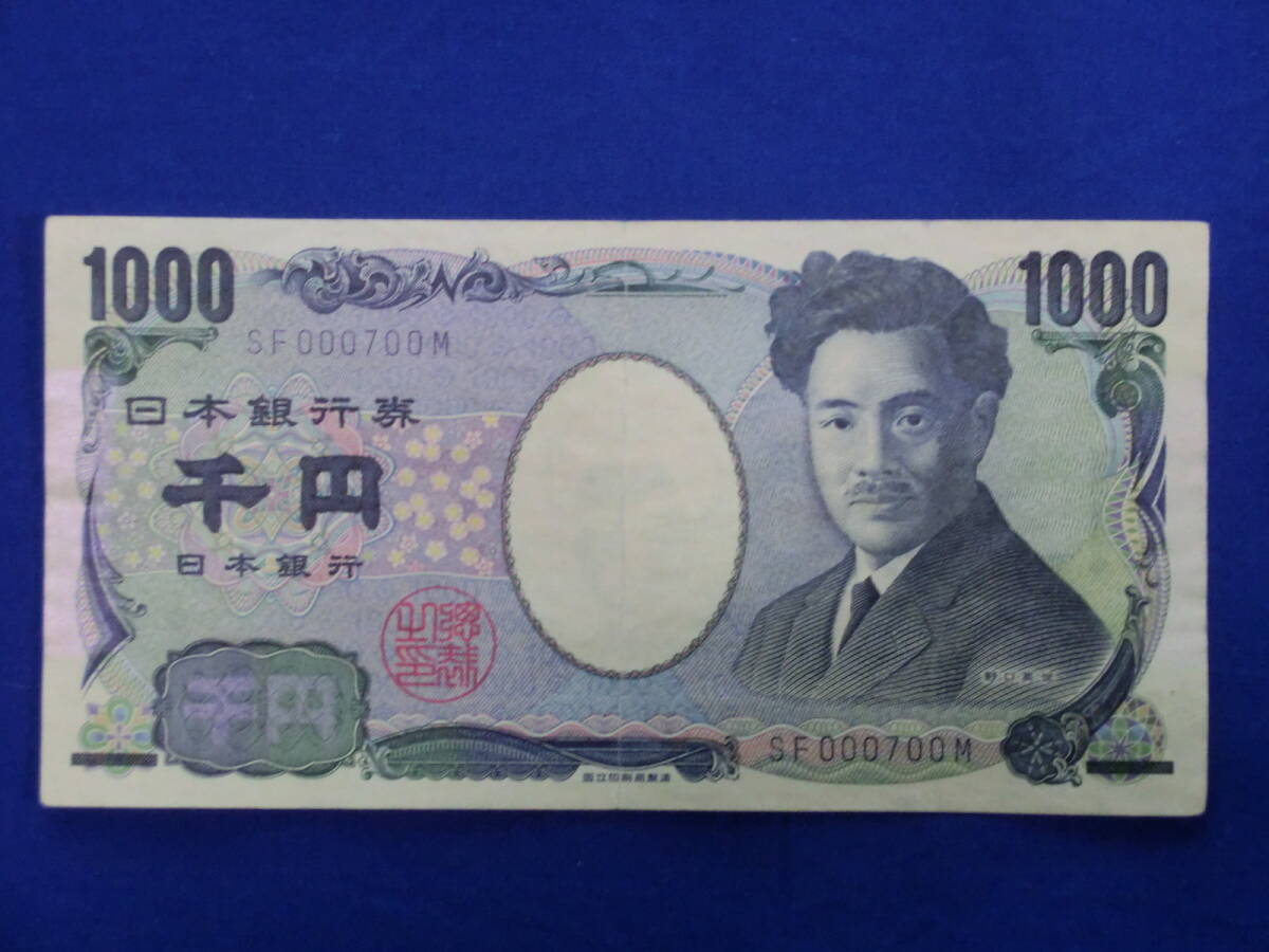 野口英世 1000円 旧札 SF 000700 M 千円札 珍番 折れ目あり