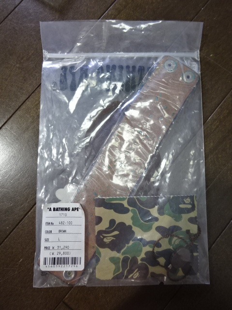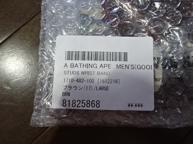 初期 BAPE【L】スタッズ レザーリストバンド レザーブレスレット A BATHING APE(ア ベイシング エイプ)NIGO 本革 日本製 新品 Brown