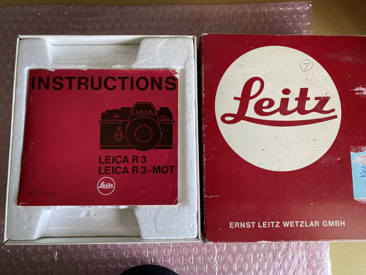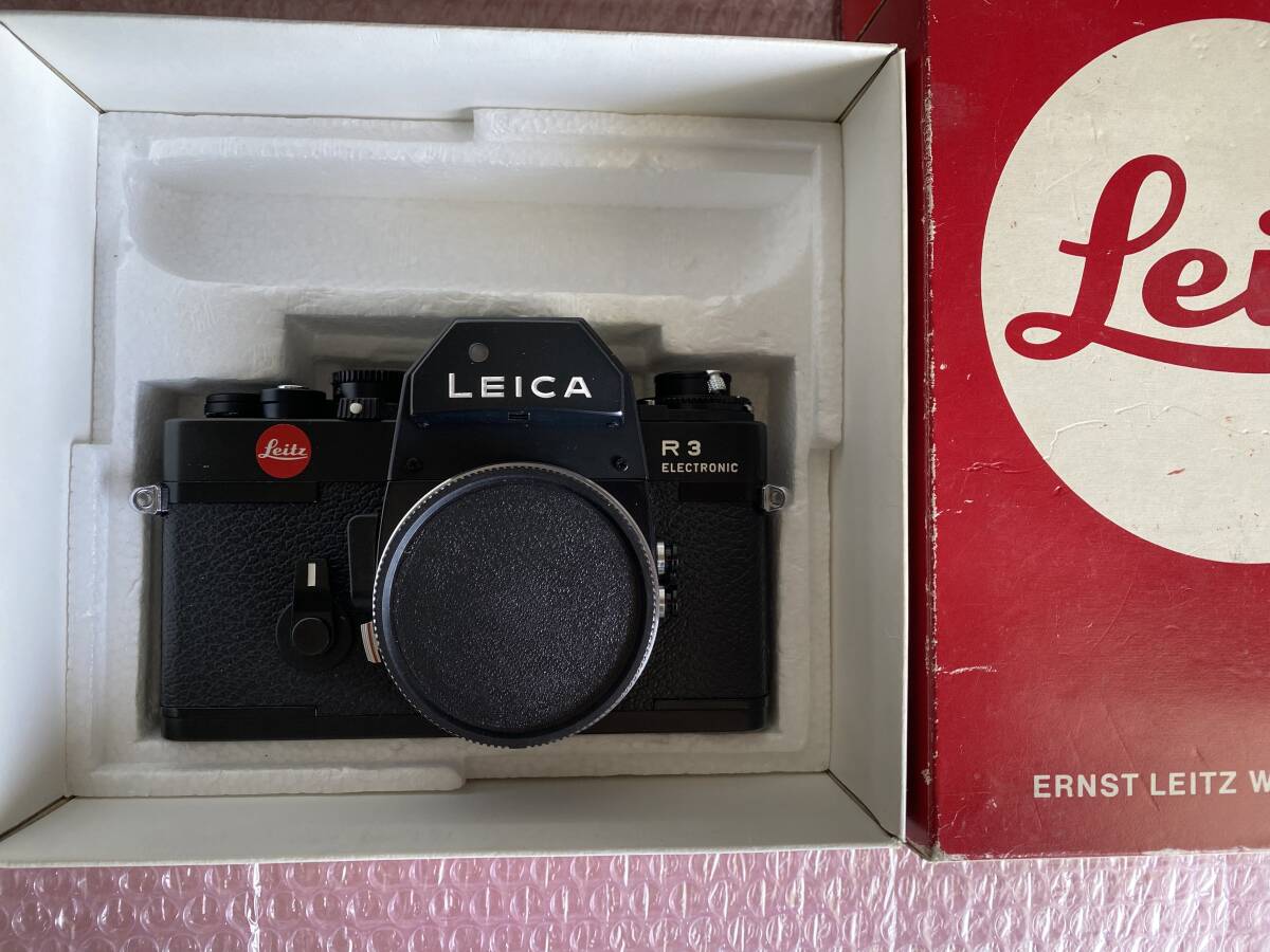 Leitz LEICA R3 ELECTRONIC 美品コレクション向け元箱付きです。Leitz社の終末期に生まれたR型システムカメラの初代機種です。マニュアル、絞り優先AEです。使用感はほとんどなくあまり実使用はされなかったと思われます。動作は正常です。ファインダーもチリはありますが実使用で問題なく綺麗です。元箱もシリアル通りでコレクションにもお勧めです。