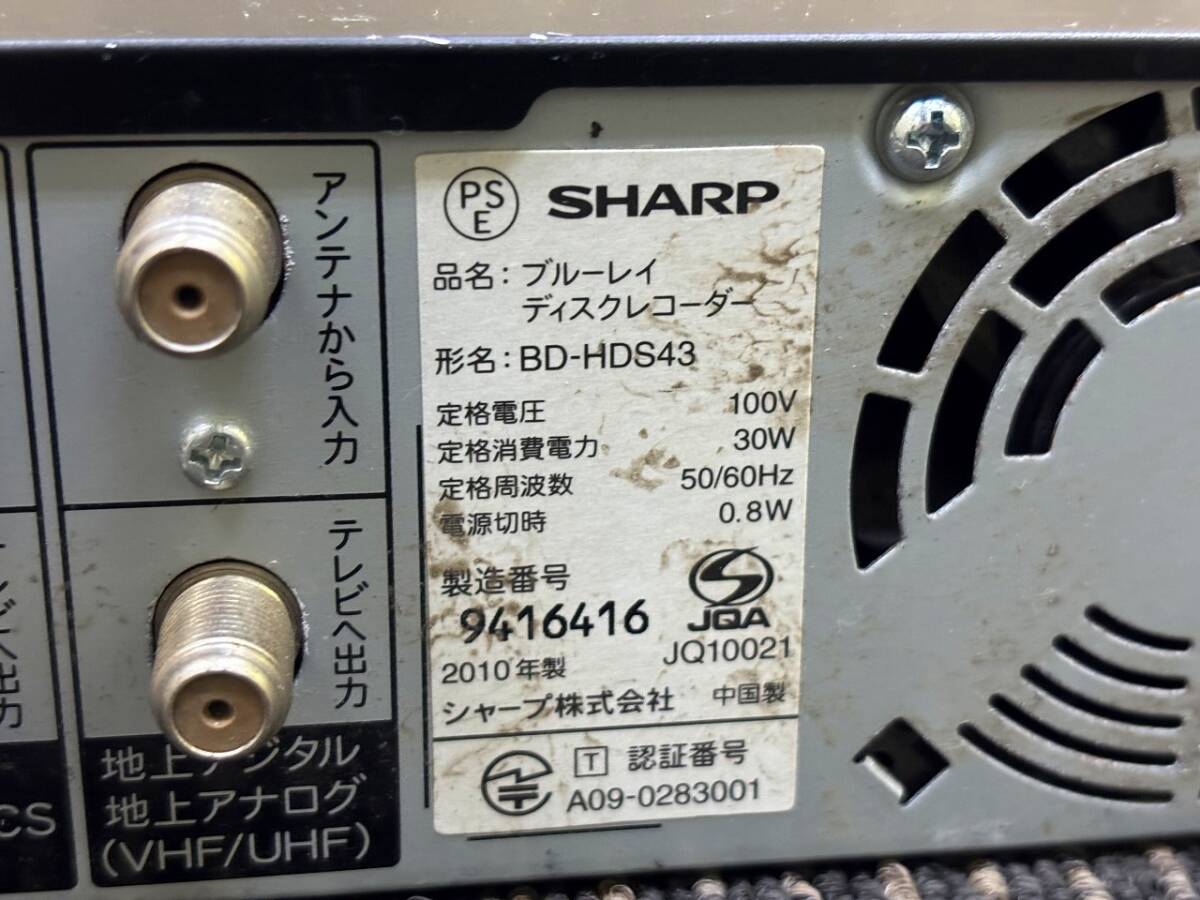 (倉T236)SHARP シャープ ブルーレイディスクレコーダー BD-HDS43 2010年製