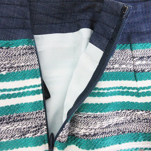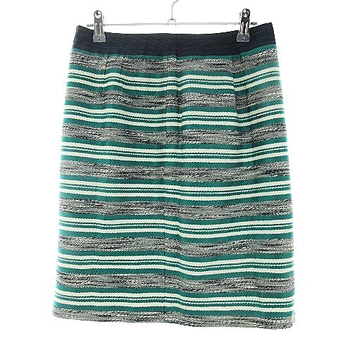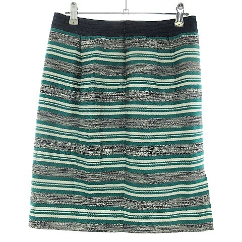アンタイトル UNTITLED スカート タイト ひざ丈 タック 薄手 サイドファスナー ボーダー 2 緑 グリーン ボトムス /T2 レディース