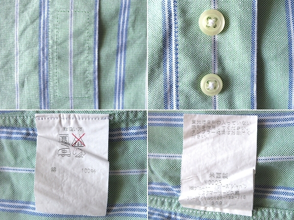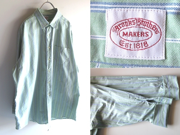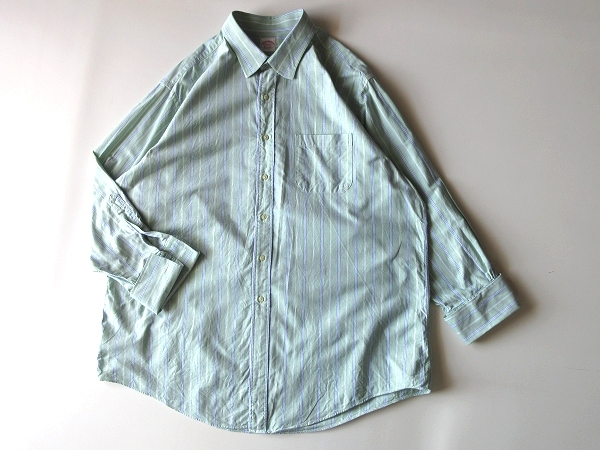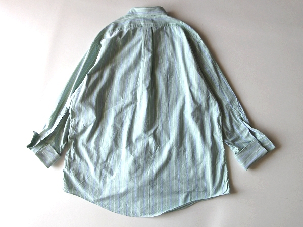 USA製 00sビンテージ Brooks Brothers ブルックスブラザーズ MAKERS ダブルカフス ストライプ オックスフォードシャツ XL相当 特大 緑青白