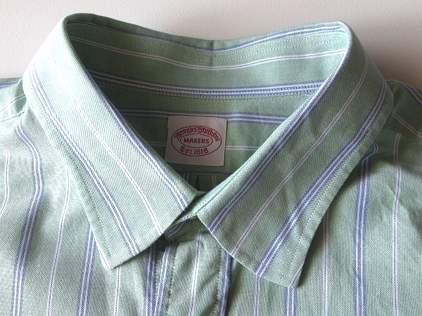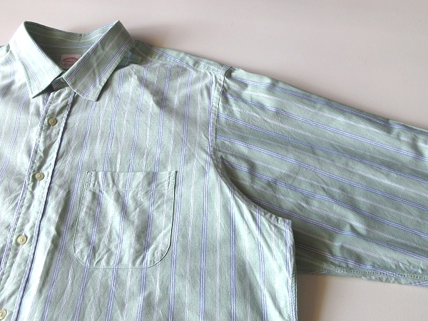 ブルックスブラザーズのシャツ。ストライプのオックスフォード生地を使用しております。袖はダブルカフス。MAKERSタグの付くアメリカ製のアイテムです。上質な素材使いと綺麗なシルエットで、様々なコーディネートにお使い頂ける一着です。