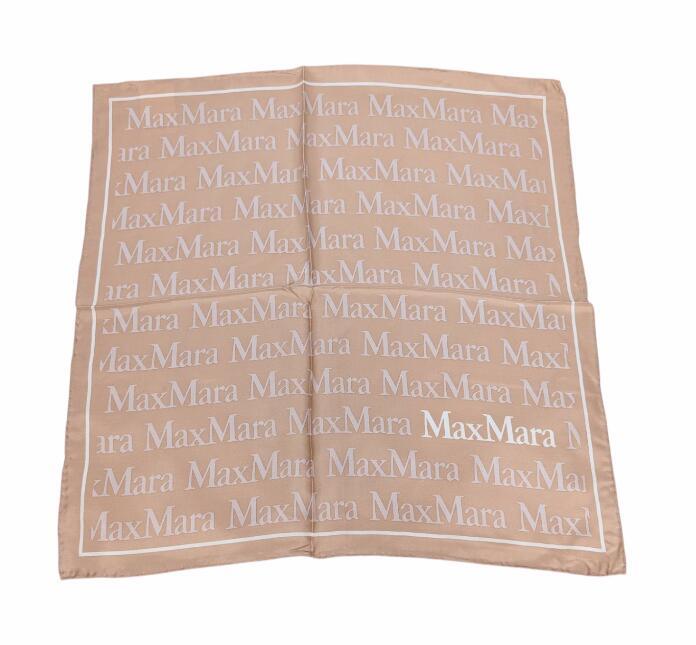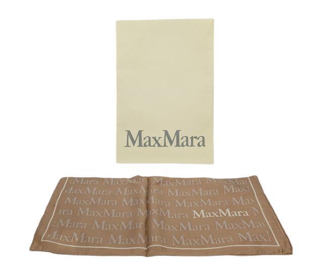 マックスマーラ スカーフ シルク100% ベージュ ロゴ ベージュ ライトブラウン レディース MaxMara 【中古】