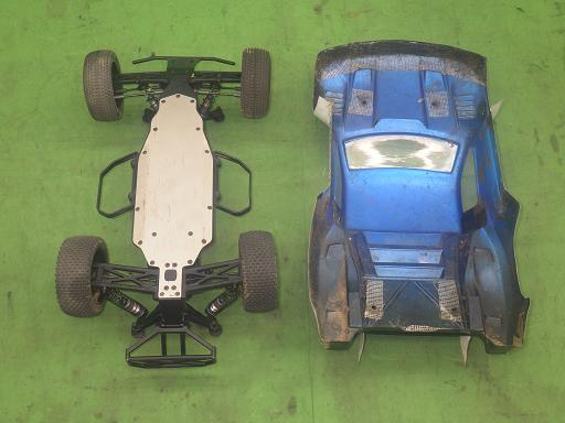 アンプ・受信機無し。走行傷あり。足回りパーツ沢山ついてます。ショックしっかり動きます。