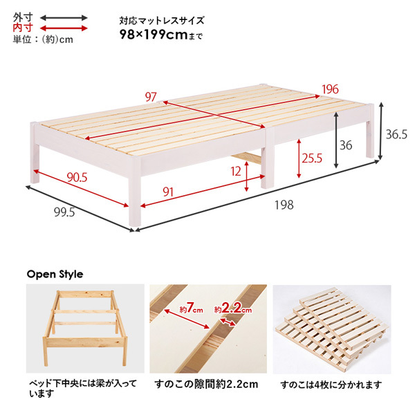 ◇床面サイズ:幅97×長さ197センチ