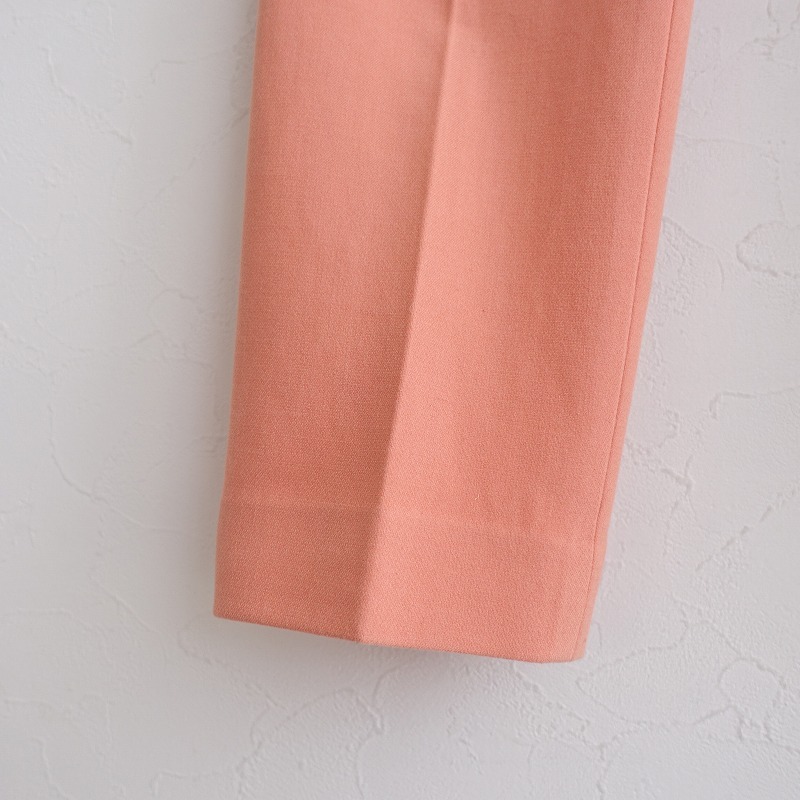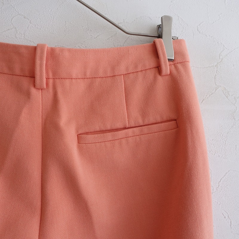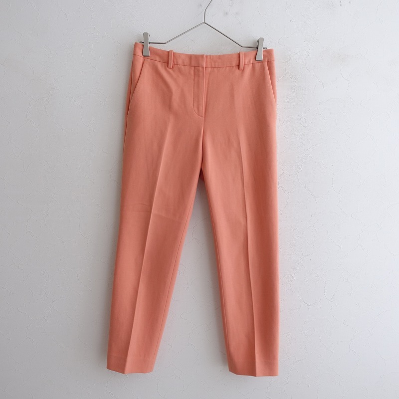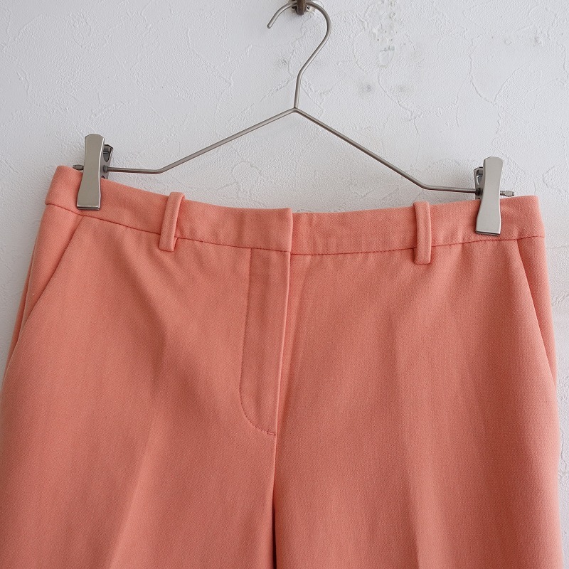 theoryのクロップドパンツです。カラーは薄めのオレンジで、ストレッチ入りの程よくふっくらとした生地で仕立てられております。センタープレス入り、フロント開口部はフック・内ボタン&ファスナー仕様、ポケットは3つ付きです。 |