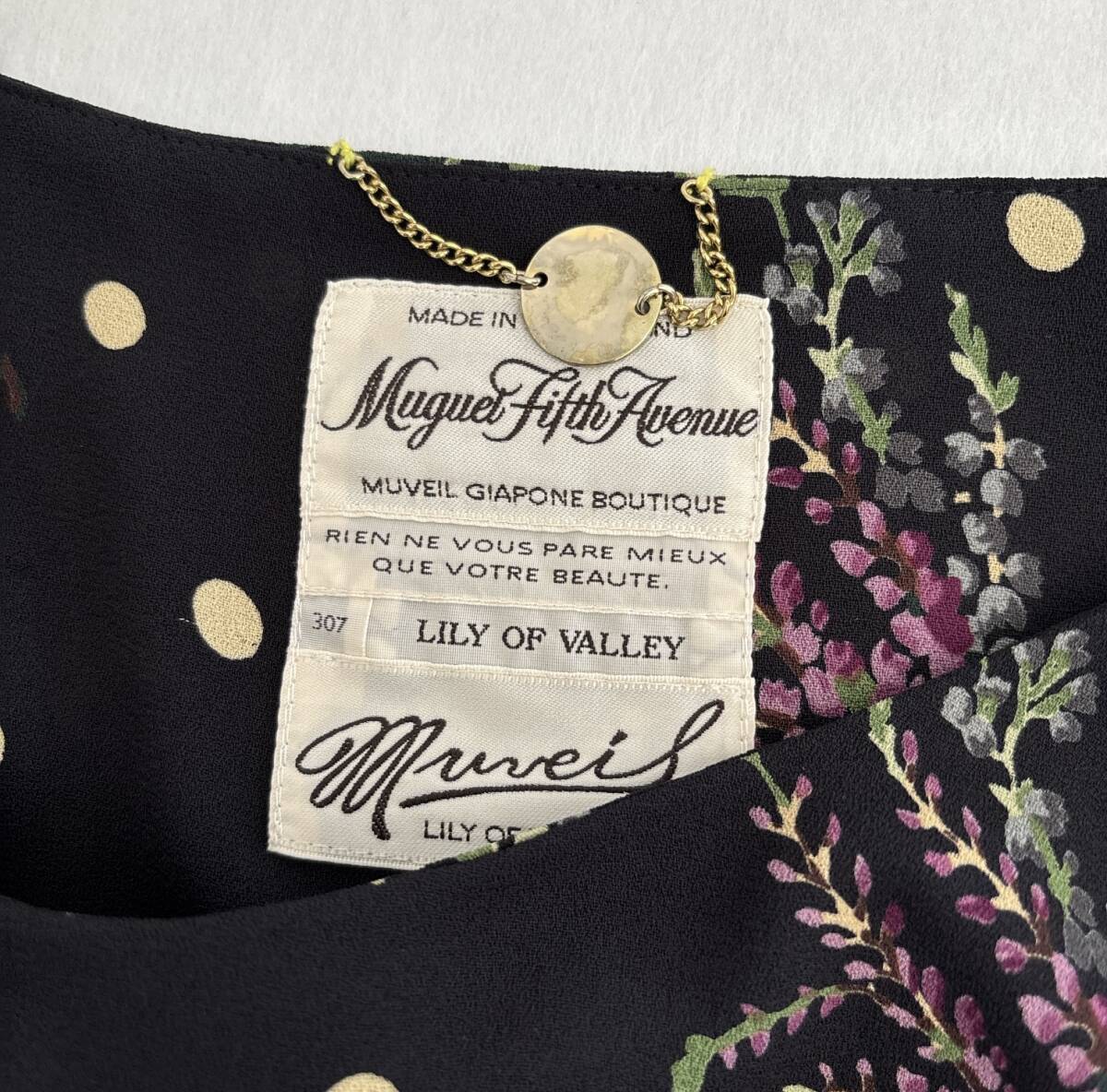 ★★ご覧いただきましてありがとうございます。大人気の美品 ミュベール ワンピース ブラック 花柄 膝丈 長袖  ドレス muveil 黒 しわになりにくい生地です。