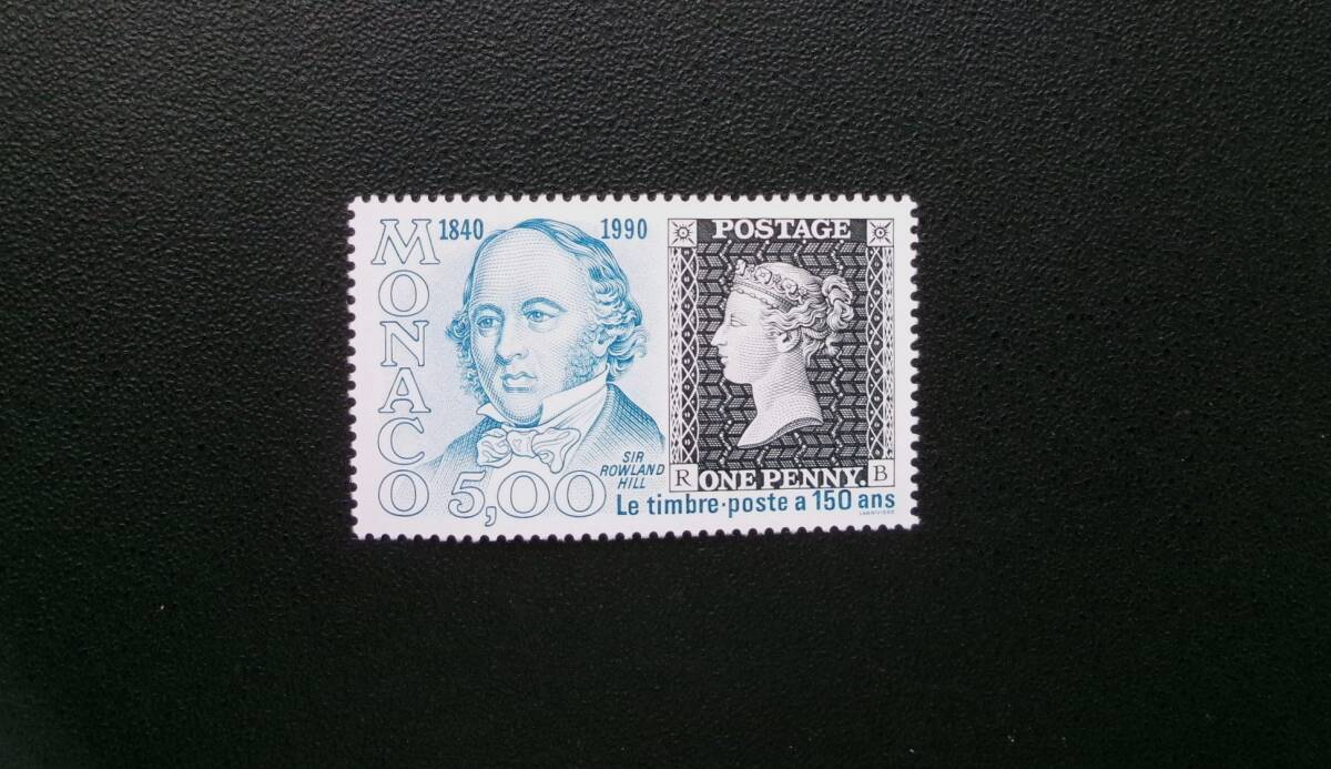 モナコ公国1990年発行 ペニーブラックとローランド・ヒルなどペニーブラック150周年記念切手 1種完 NH 凹版印刷 未使用美品です。