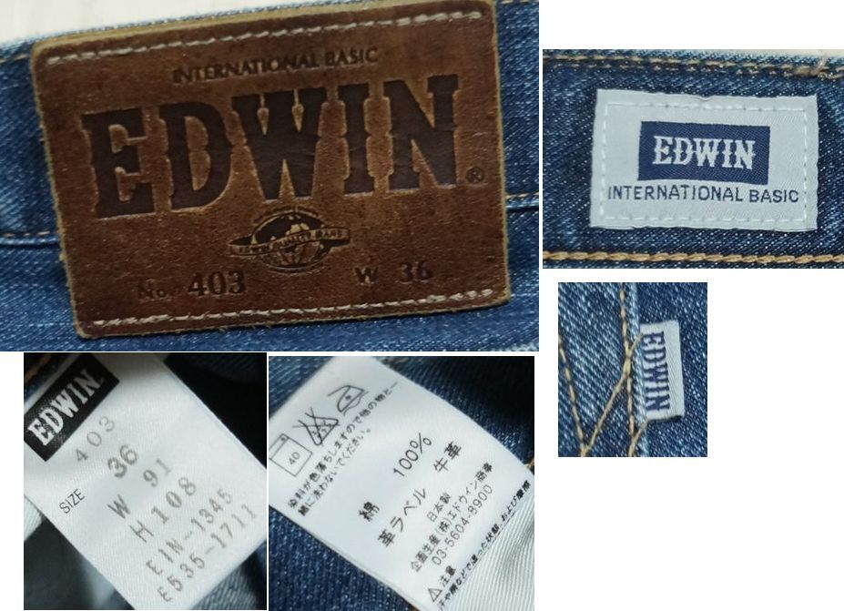 良品 日本製 EDWIN 403 W36 大きいサイズ エドウィン 牛革ラベル MADE IN JAPAN 国産品