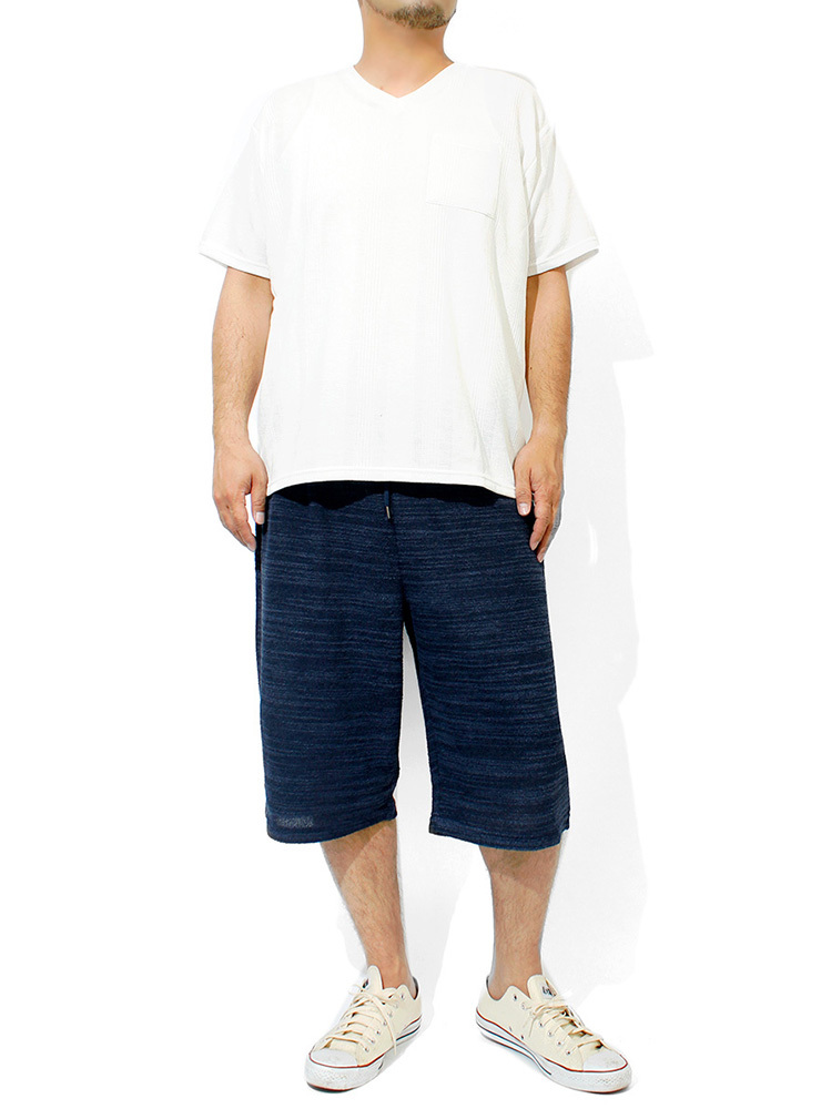 | 商品名 | 【新品】 2L ネイビー ショートパンツ メンズ 大きいサイズ 薄手 スラブ サマーニット ストレッチ ウエストゴム ハーフパンツ |