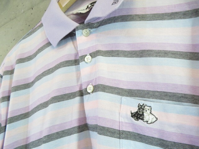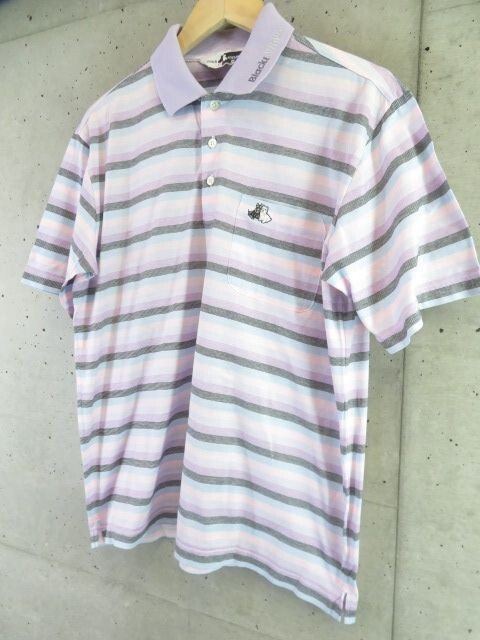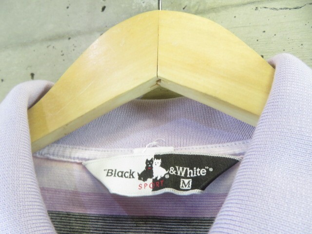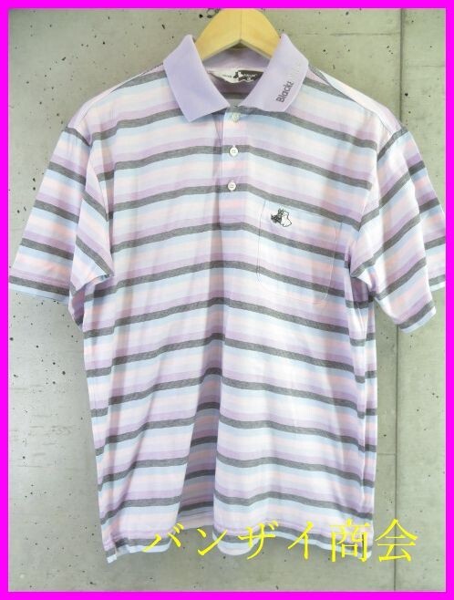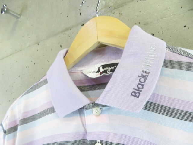 【送料300円可】0150b10◆良品◆日本製◆BLACK&WHITE ブラックアンドホワイト 半袖ボーダーポロシャツ M/ゴルフジャケット/パンツ/ニット