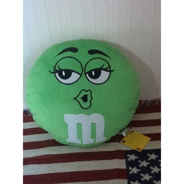 【201038】「お口でとけて手でとけない」でおなじみのチョコレート菓子、M&M's(エムエアンドエムズ)のチョコ型クッション☆ふかふかしてて触り心地も抜群のラウンドクッション。カラフルなクッションなのでシンプルなソファーやベットに何色がおくことで、グッとポップなお部屋に大変身しますよ!!クッションの表側にはキャラクターそれぞれの顔が刺繍されていて、裏側はすべての色に(M)の文字が刺繍されています。 サイズ直径36.0cm