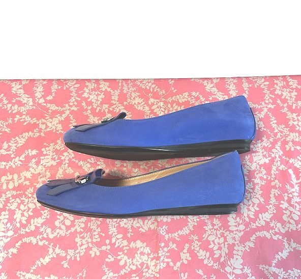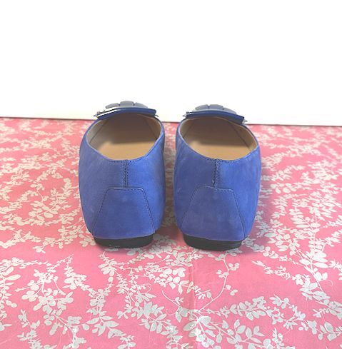 ◎なめらかな上質シープスウェードにエナメルレザーのフリンジをあしらい、シルバーピンで留めたデザインが素敵です。フラットのため履きやすく、足を綺麗に見せてくれる理想的な一足です。通常、日本サイズ22.5~23.0cmを履いておりますが、ちょうどよい感じです。いかがでしょう★