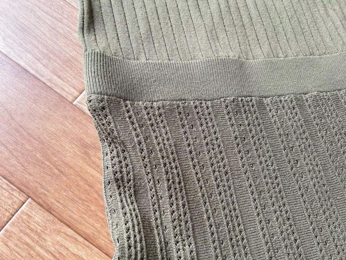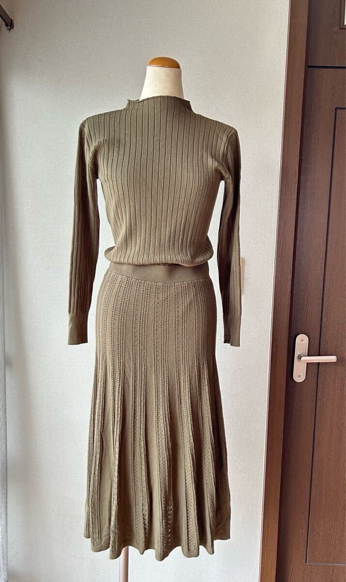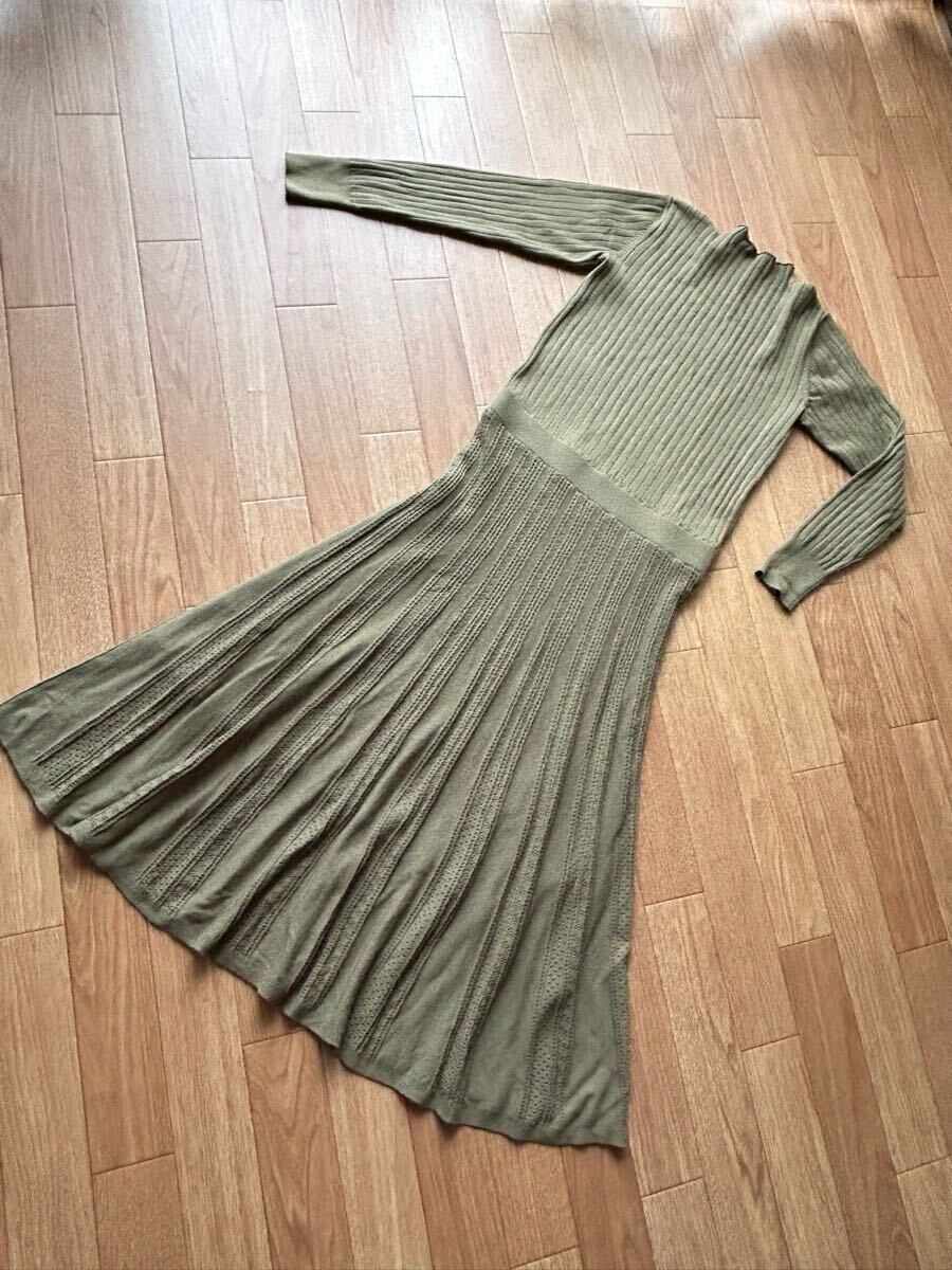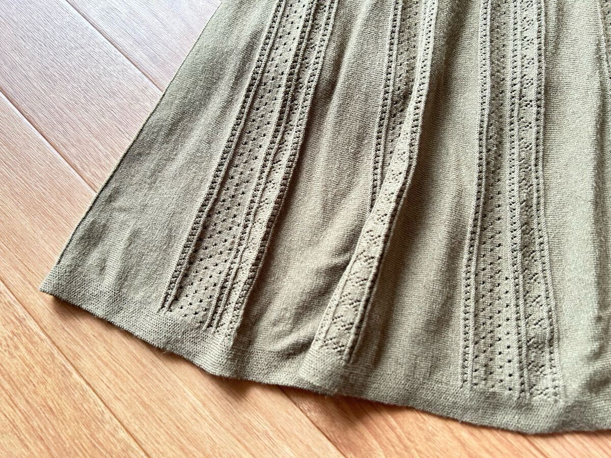 ニットなので、とても着やすくスカートのニットの模様がとても可愛らしく、縦ラインなので細身にも見えとても素敵なワンピースです。