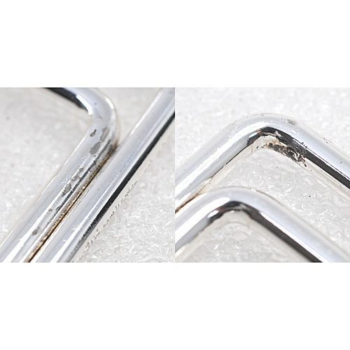 当店のお取り扱い商品は、全て真贋判定済みの本物保証になります。 本物(正規品)ですか?の質問にはスルーさせて頂きます。 また、サイズが合わないや、イメージと違う等の返品は受け付けておりません。 コメント欄、商品説明を今一度ご確認いただき、ご検討をお願いいたします。 ・こちら、シルバー925製ではございますが、メッキ仕上げが施されている為、ポリッシュ(磨き)は行っておりません。 その為、プツプツとした茶色い変質や、薄っすらとメッキの剥げ箇所、薄擦れがございます。 ・しっかりとした挟力はありますが、デザイン上、使いづらさを感じます。 紙幣4つ折りだと、4枚程度が限界です。 ・詳しくは画像をご参照ください。 ※商品確認には万全の注意を払っておりますが、記載しきれないダメージ等ある場合がございますので、中古品にご理解のない方はご遠慮下さいませ。 |