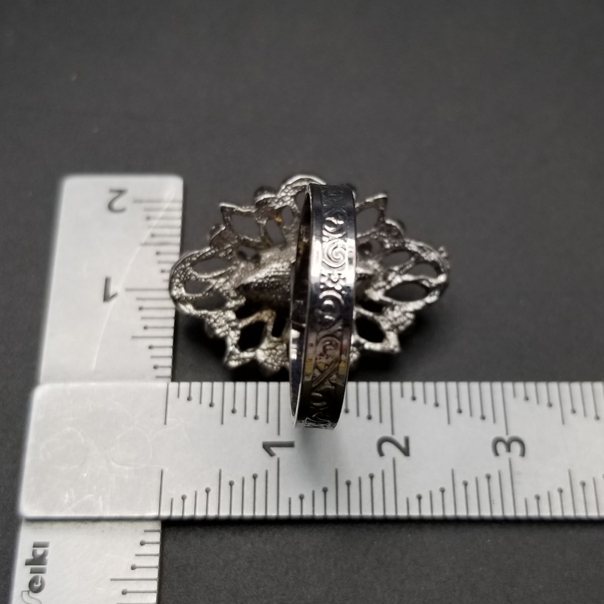 ライトブルー マーキスカット ヴィンテージ リング 指輪 シルバートーン オープンワーク ゴージャス ファッションジュエリー 6Y-F