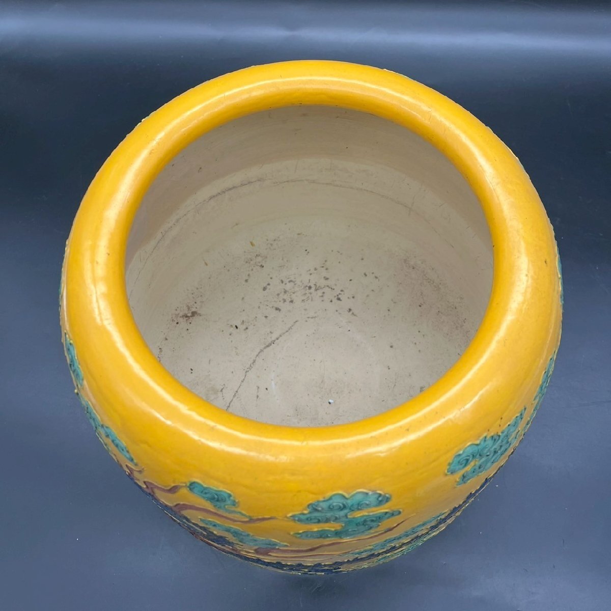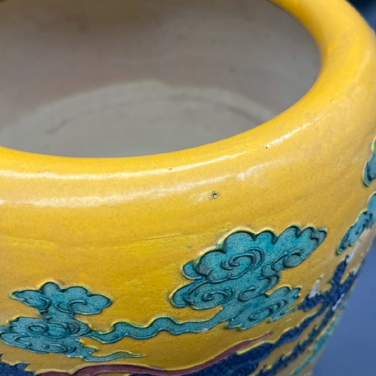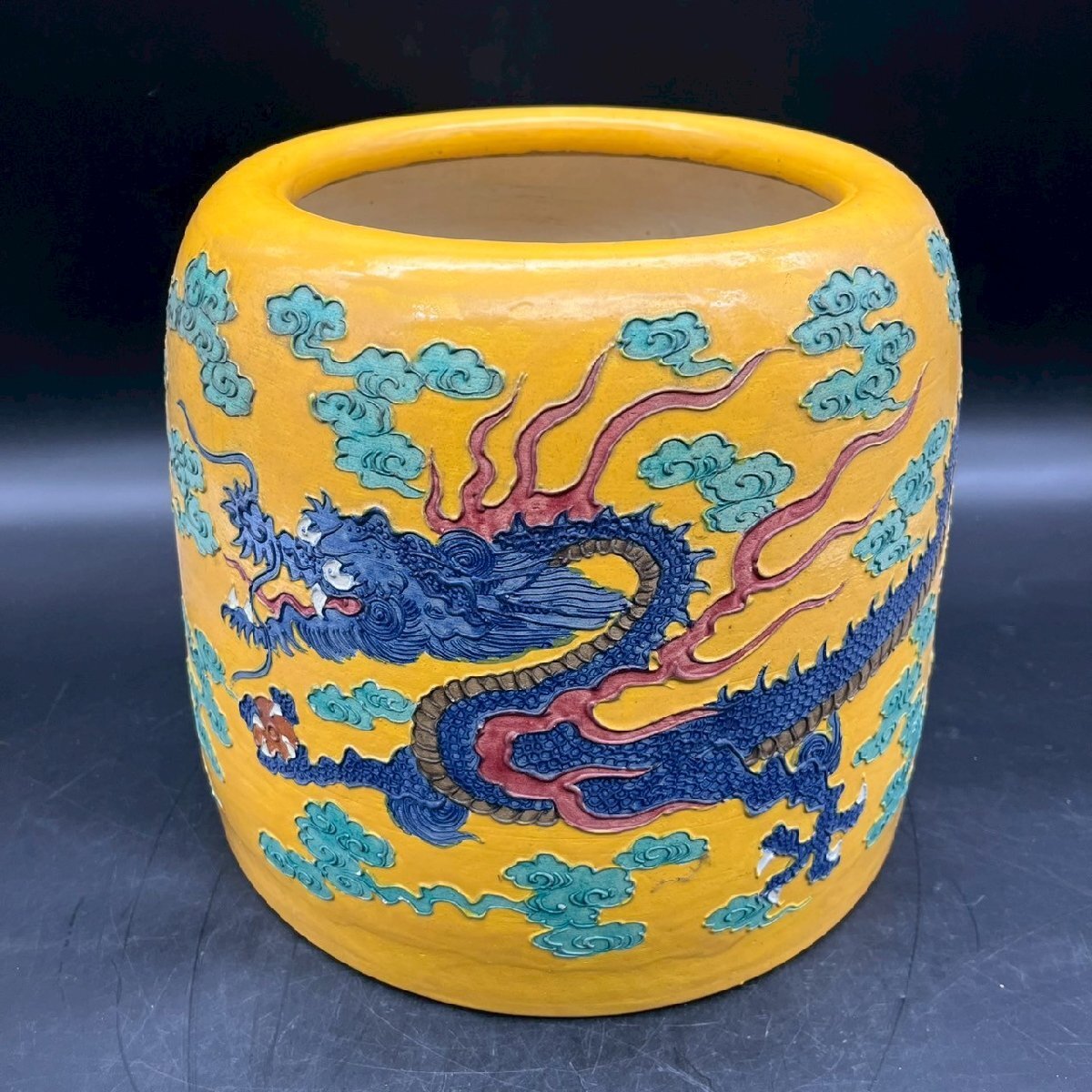 SW0429-1-3 中国 古玩 火鉢 水盤 京 涌翠 粉彩 唐物 雲龍図 陶芸 時代物 陶器 古美術 古道具 置物 高さ24cm 口径17.5㎝ 100サイズ