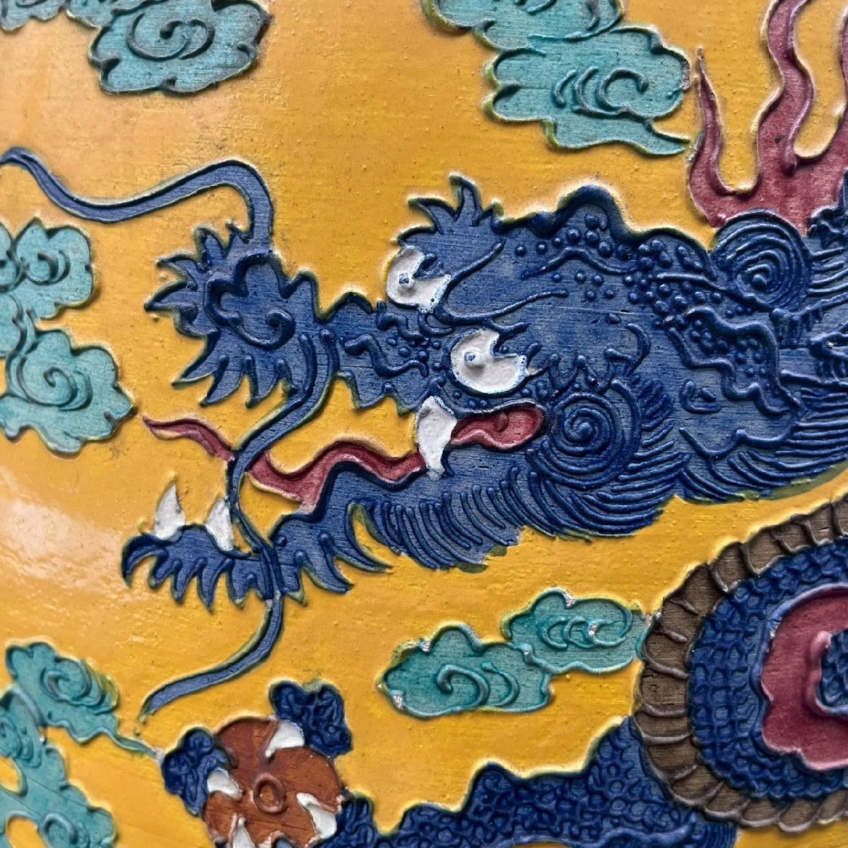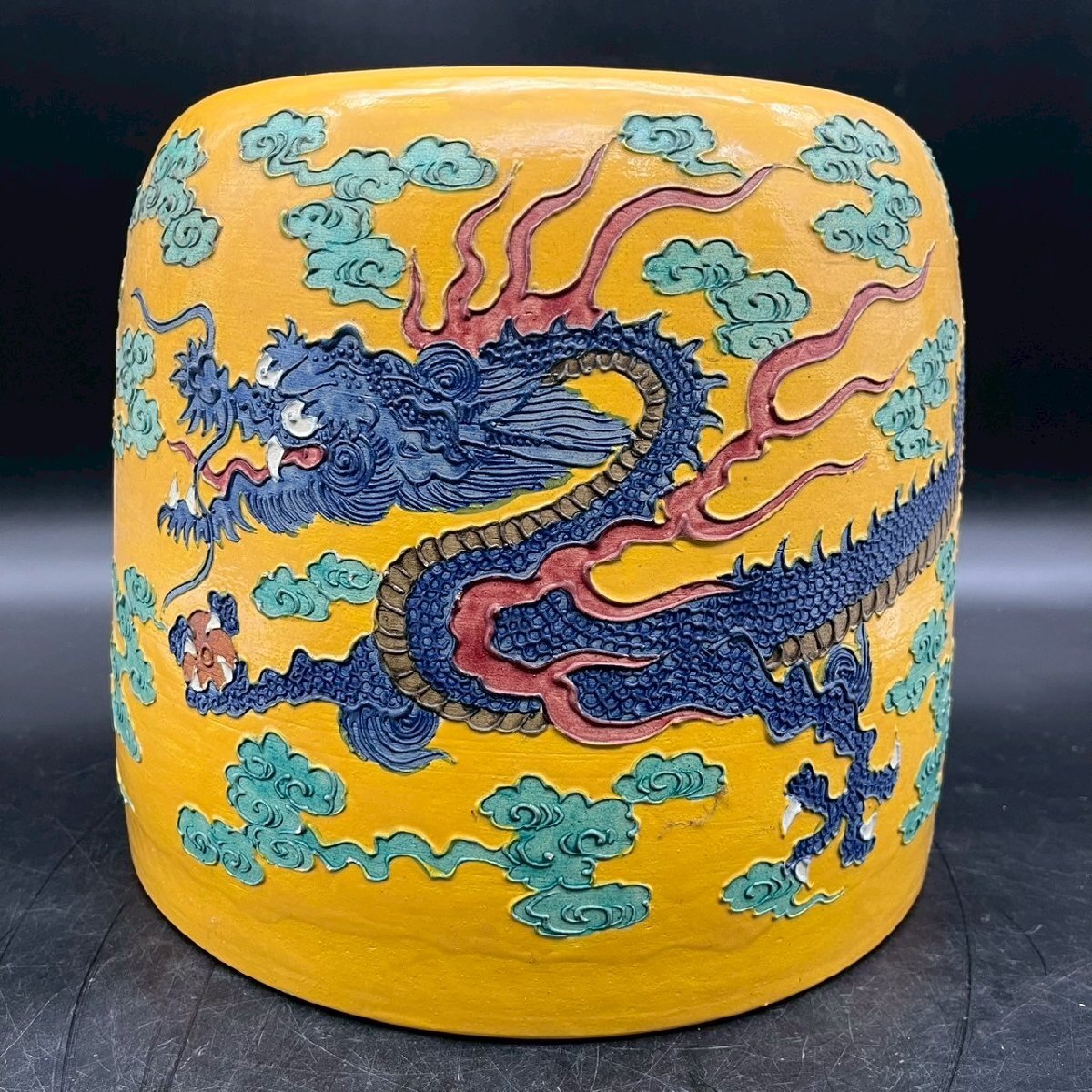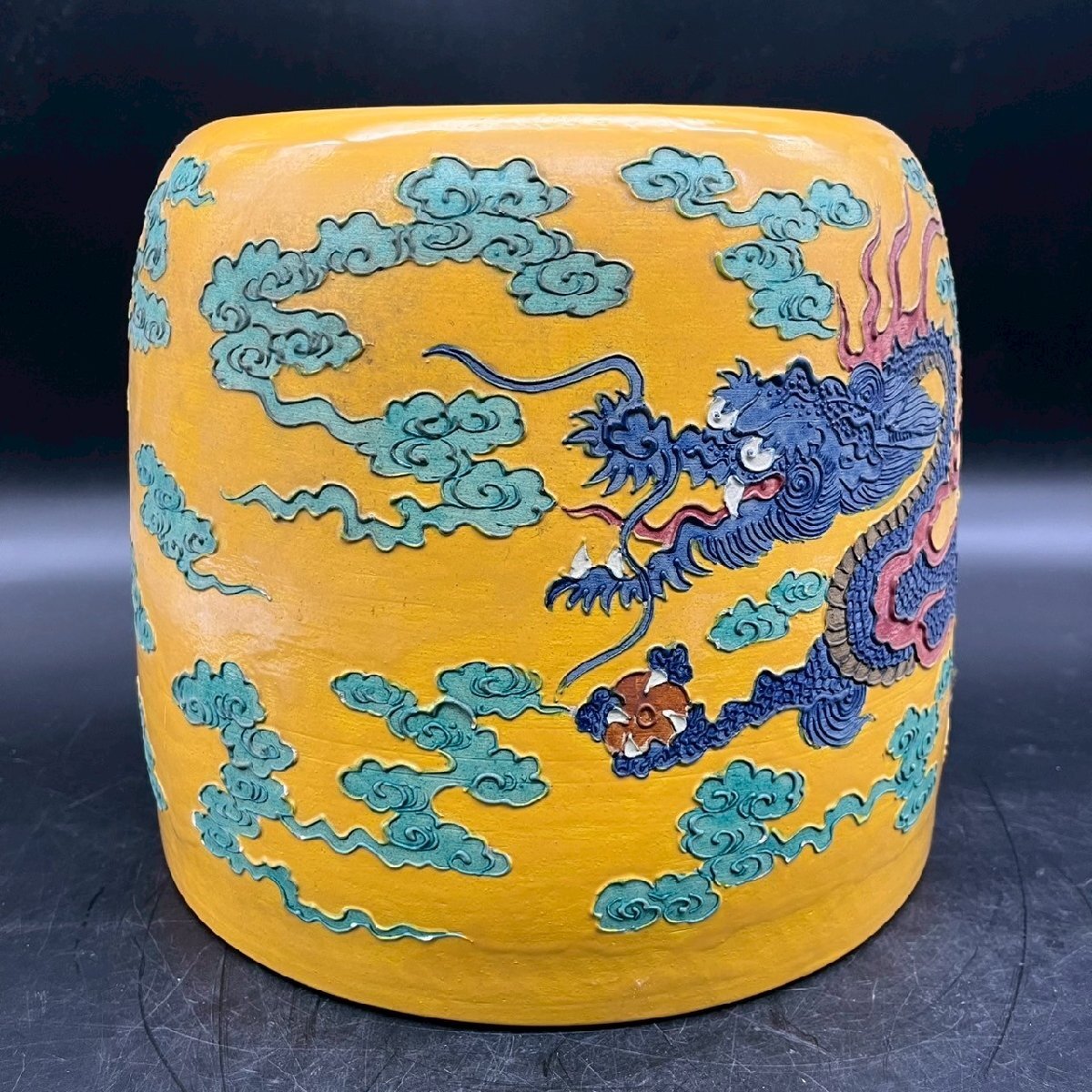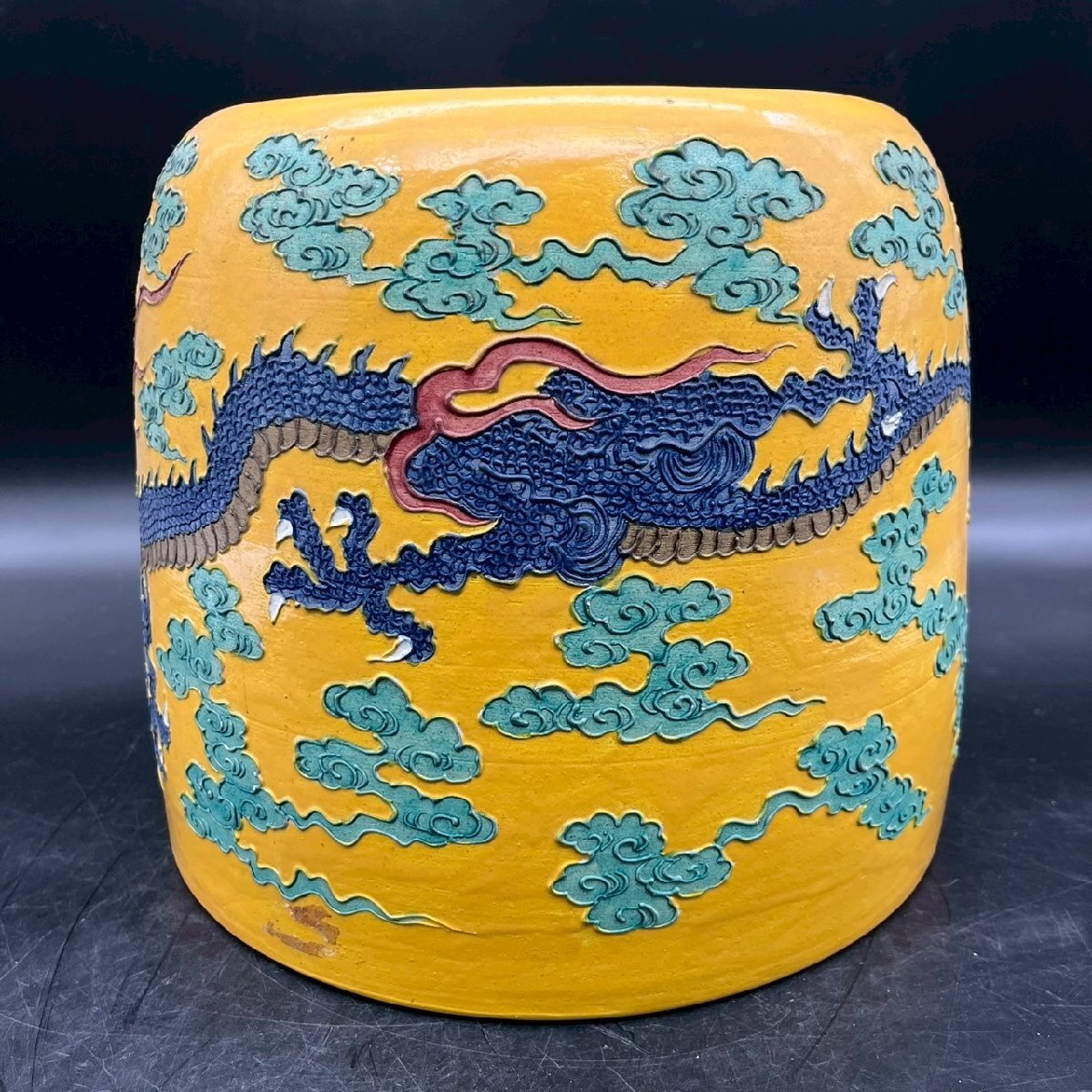 SW0429-1-3 中国 古玩 火鉢 水盤 京 涌翠 粉彩 唐物 雲龍図 陶芸 時代物 陶器 古美術 古道具 置物 高さ24cm 口径17.5㎝ 100サイズ